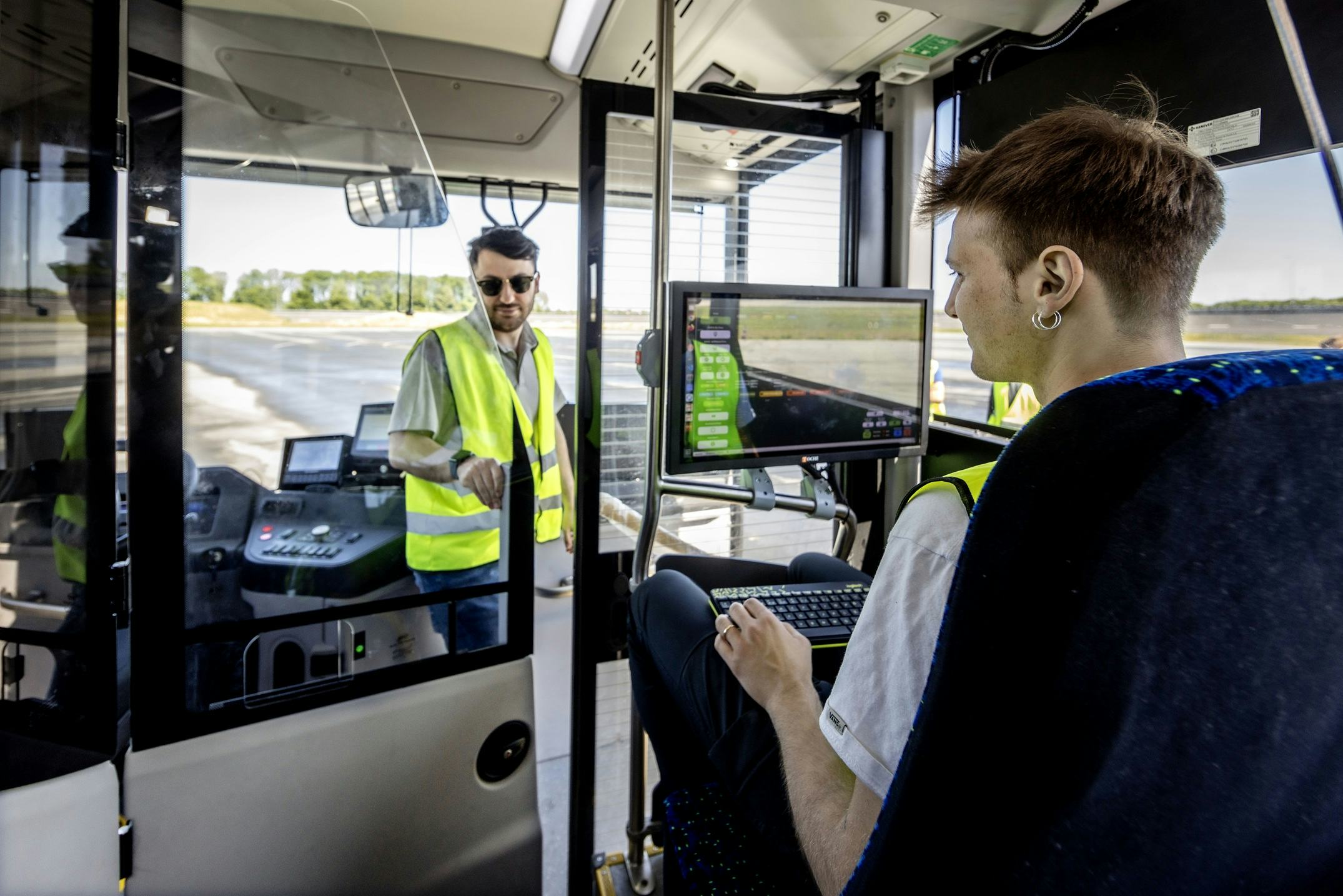 De bus is een stadsbus van een Turkse fabrikant, uitgerust met een Automated Driving System. Om dit mogelijk te maken moest de bus eerst slagen voor de tests op het testterrein. Gijsbert: “We testten allerlei mogelijke scenario’s zoals gedrag op kruispunten en rotondes, noodstops, regen, donker, inhalen, overstekende voetgangers, slingerende fietsers. En ja, hij rijdt echt autonoom. Maar wel met een menselijke safety driver aan boord, want het blijft een prototype dat nog in een ontwikkelfase zit. Dan is deze backup echt vereist. ” Uiteindelijk moet deze pilot leiden tot een autonome bus die aan de Europese typegoedkeuringsstandaard voldoet.
