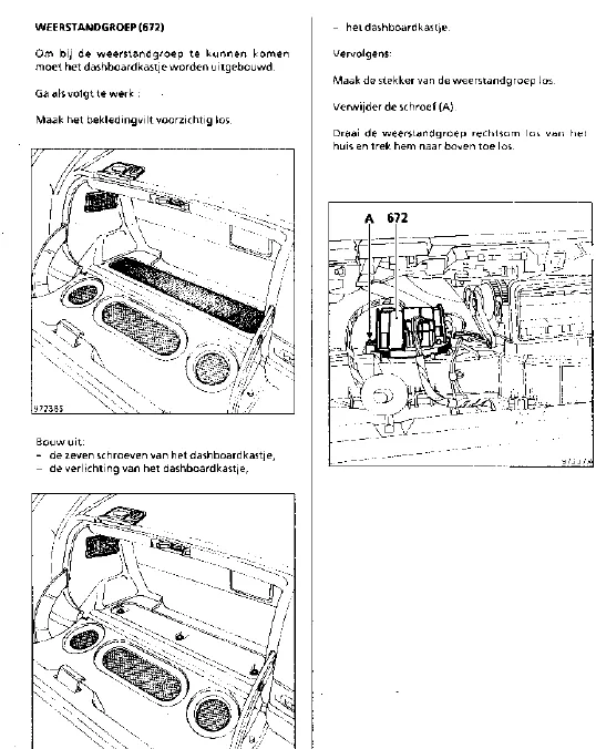 hierbij plaatsbeschrijving weerstandsgroep.Voor de lampjes v/d bediening moet deze uitgebouwd worden en zijn ze dan langs achter bereikbaar.Check best eerst eens je zekeringen om geen nutteloos werkt te doen...