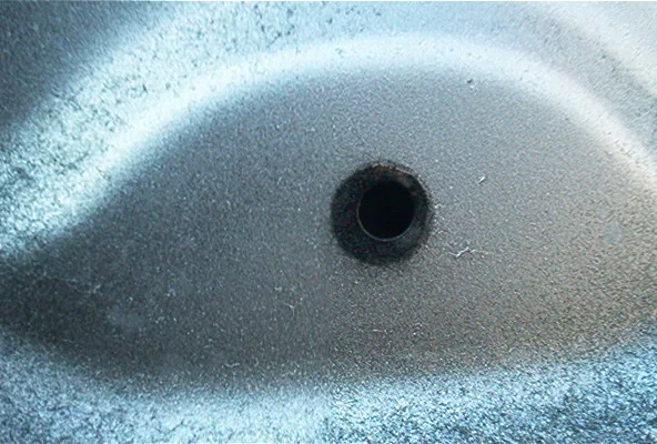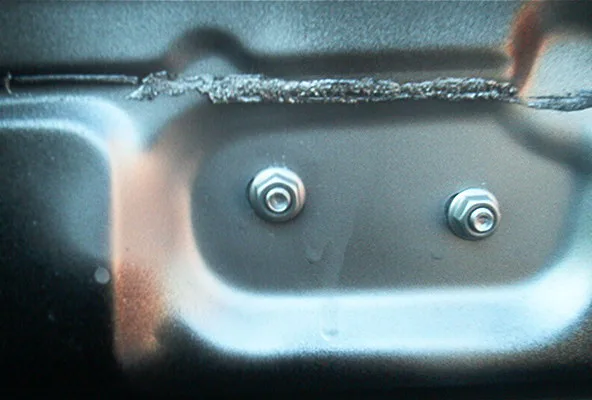 Door voor demontage met een spuitbus verf in een contrasterende kleur over de bevestigingspunten te spuiten blijft er een duidelijke afdruk zichtbaar hoe het oude mechaniek heeft gezeten.