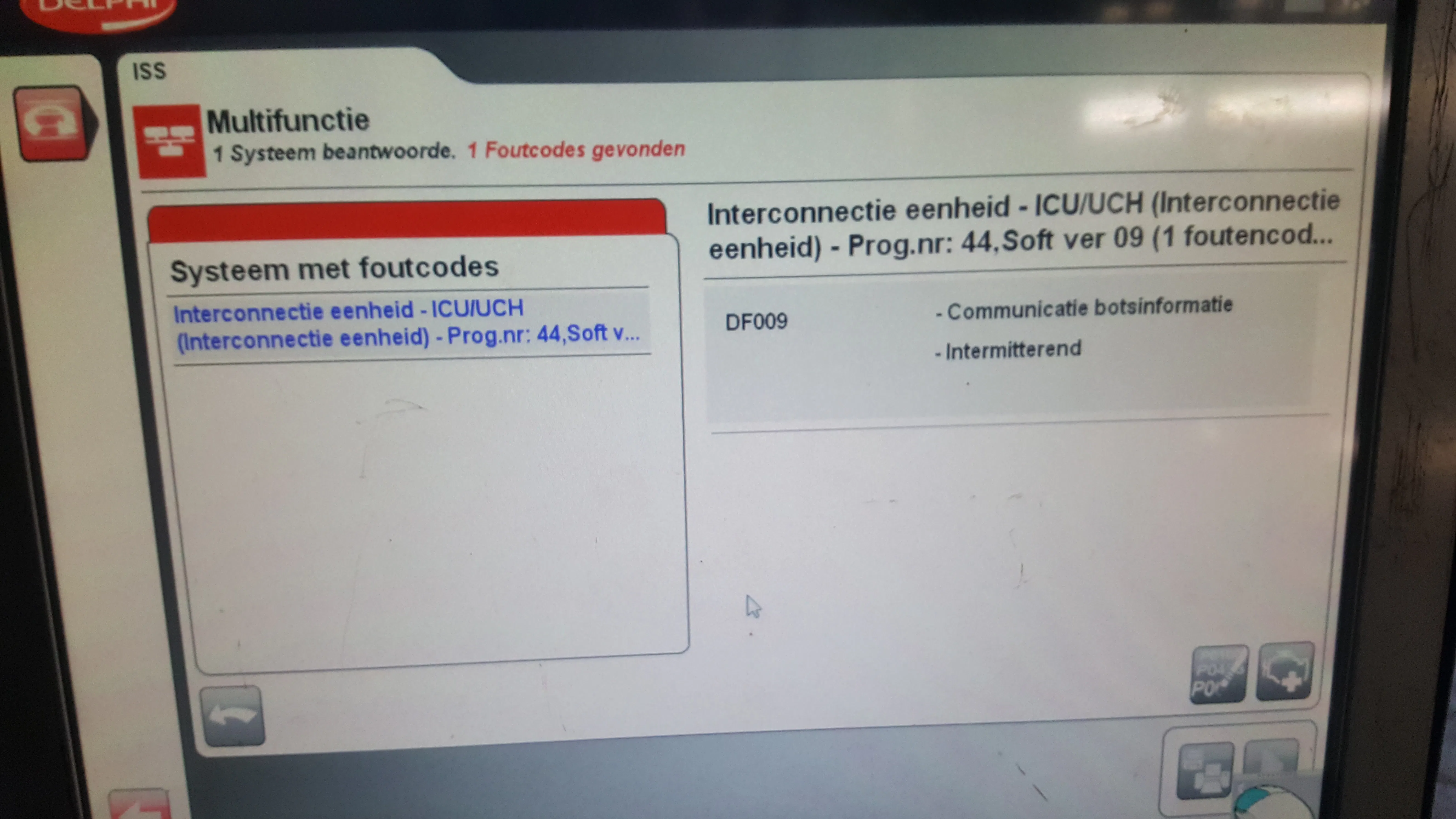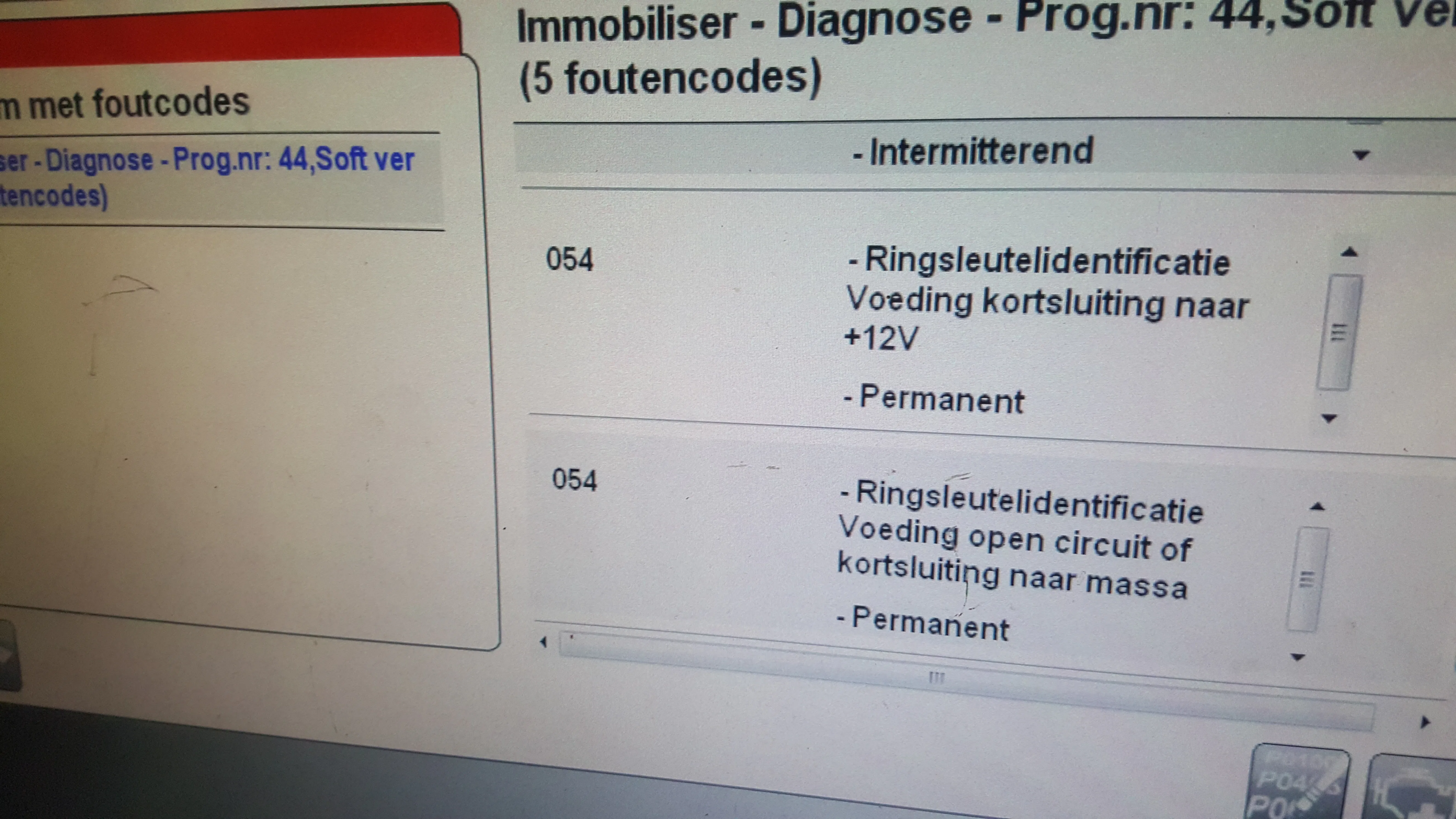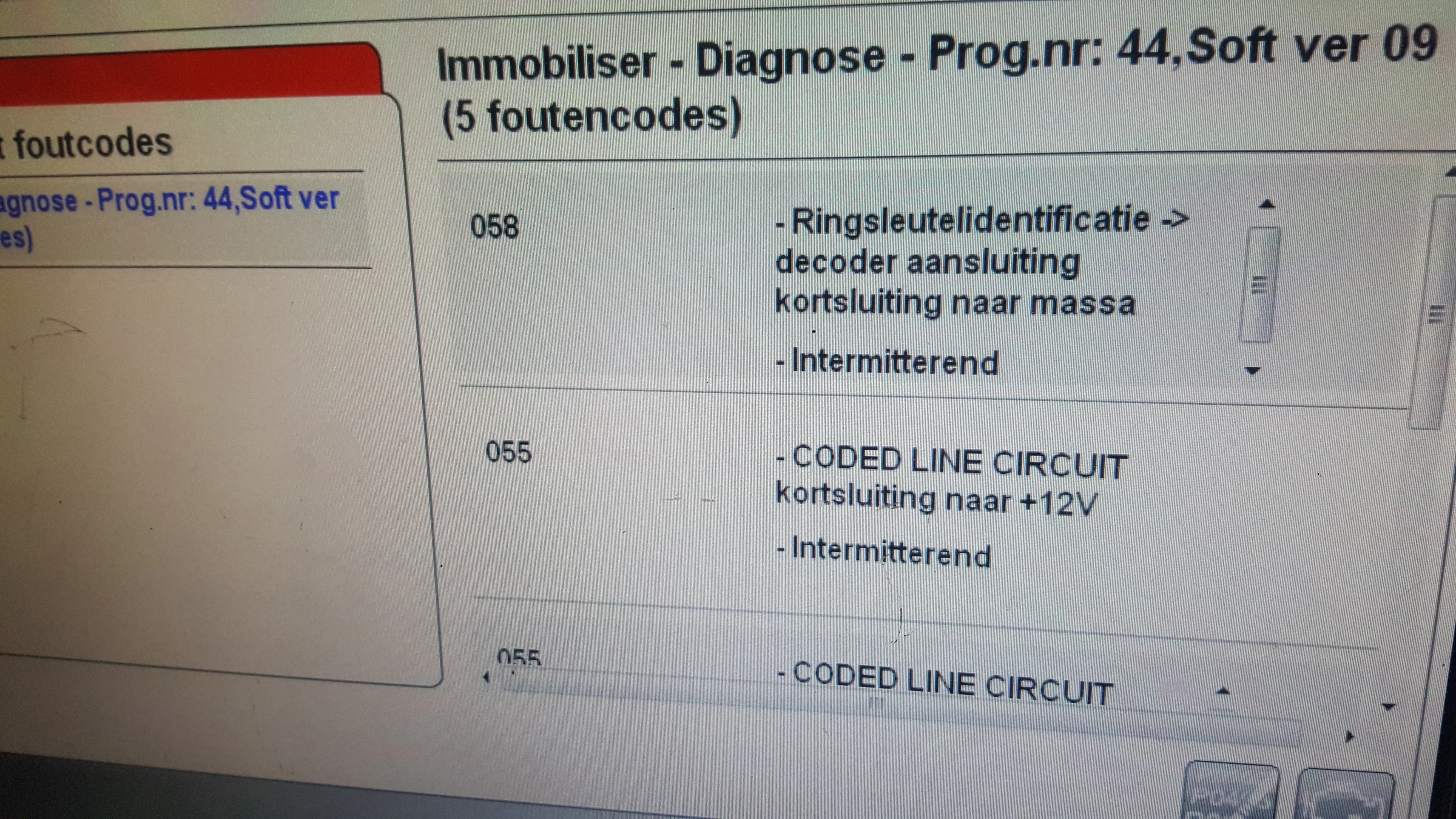 Met uitlezen komen we niet verder dan DF009, 054, 055 en 058. Alle storingen kunnen gewist worden. Direct na het wissen slaat de auto even aan en daarna niet meer. De foutcodes komen dan weer terug.