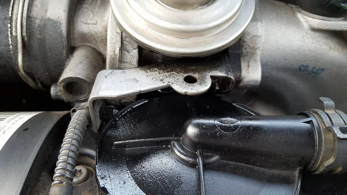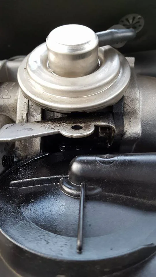 Deze wagen heeft rond de EGR-klep overal olie liggen, Ook aan de turbo hangt olie.