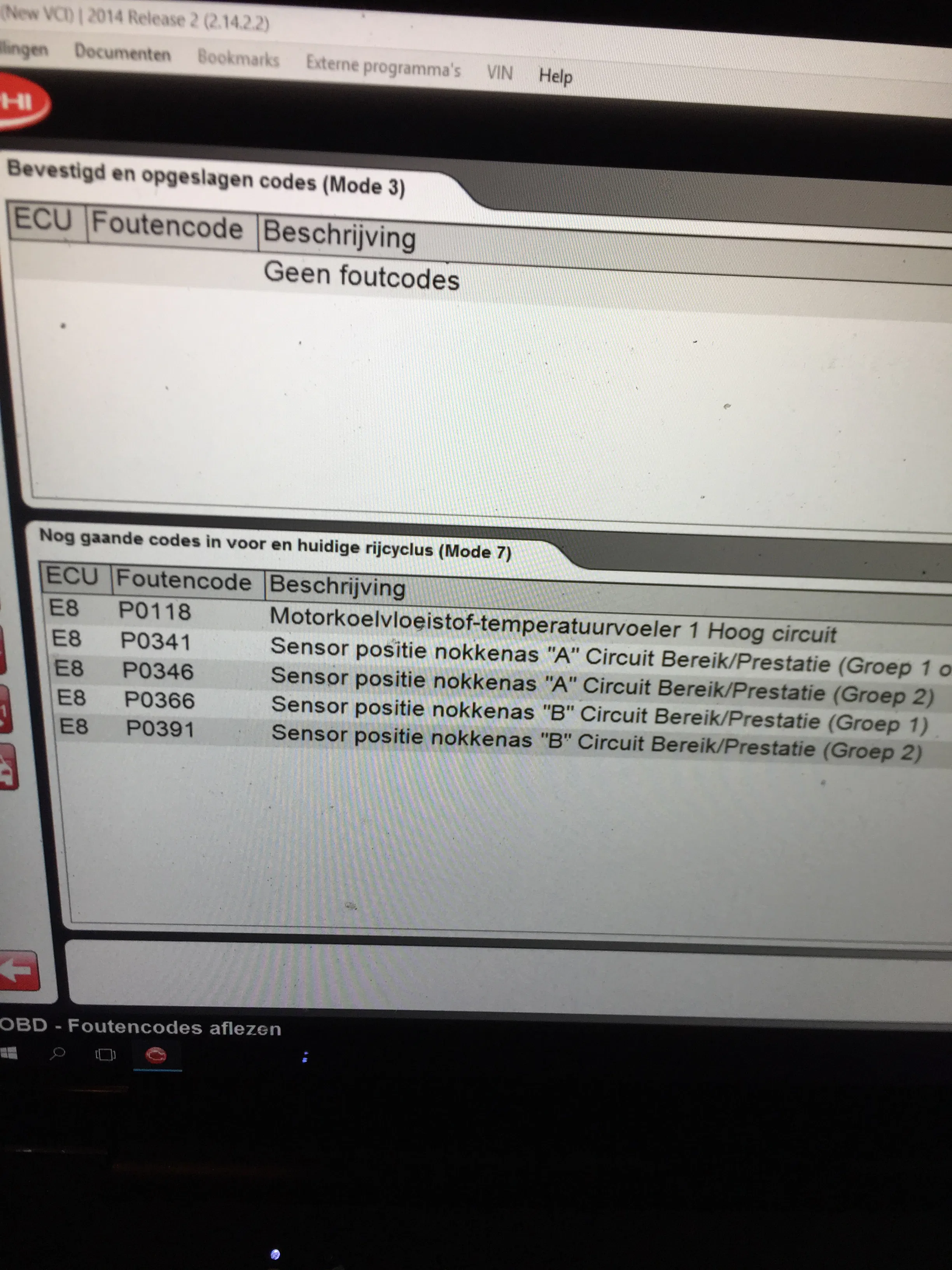 nu tot mijn verbazing krijg ik foutcode p0366 en p0391 nokkenaspositie b buiten bereik groep 1 en 2