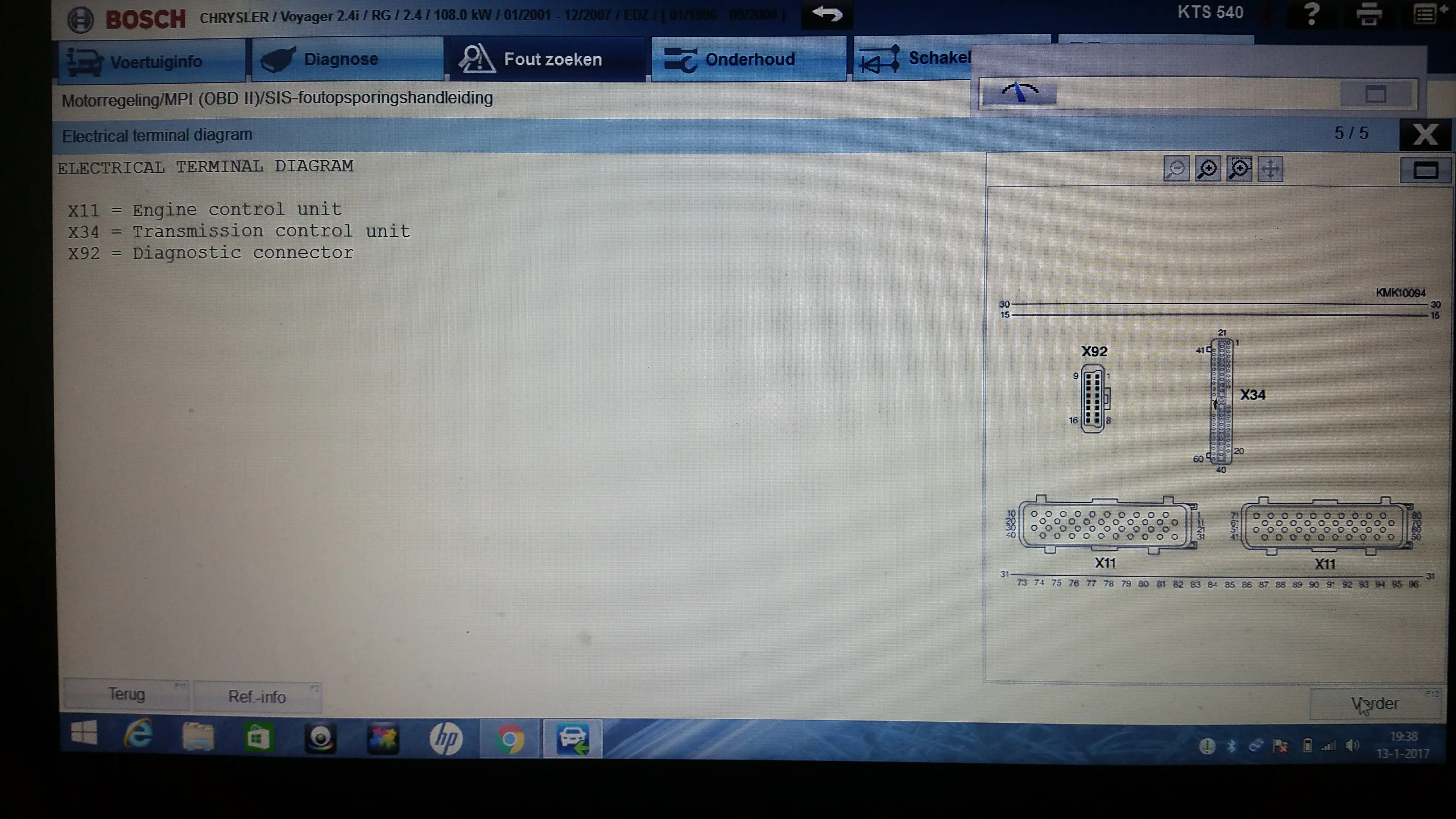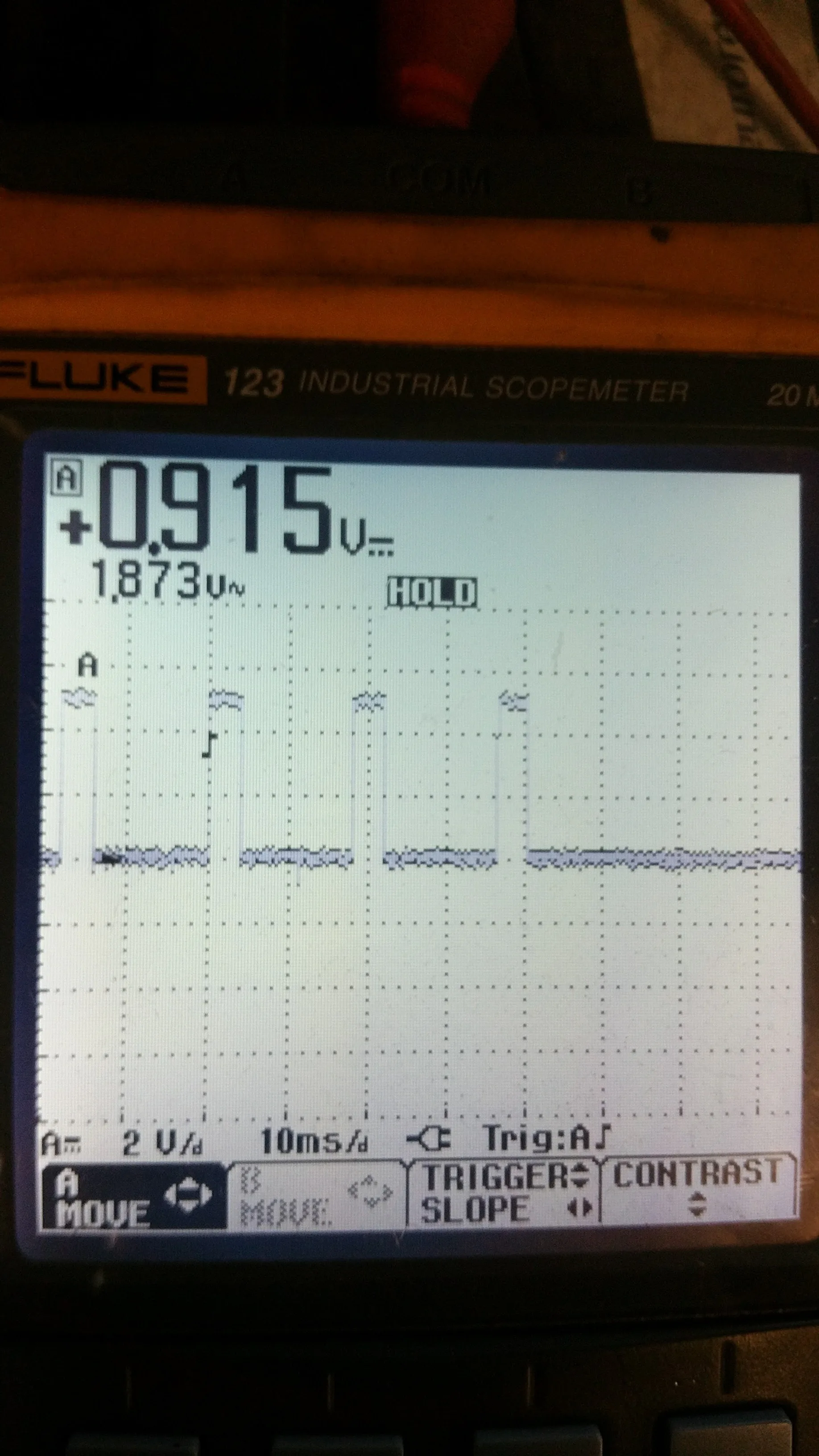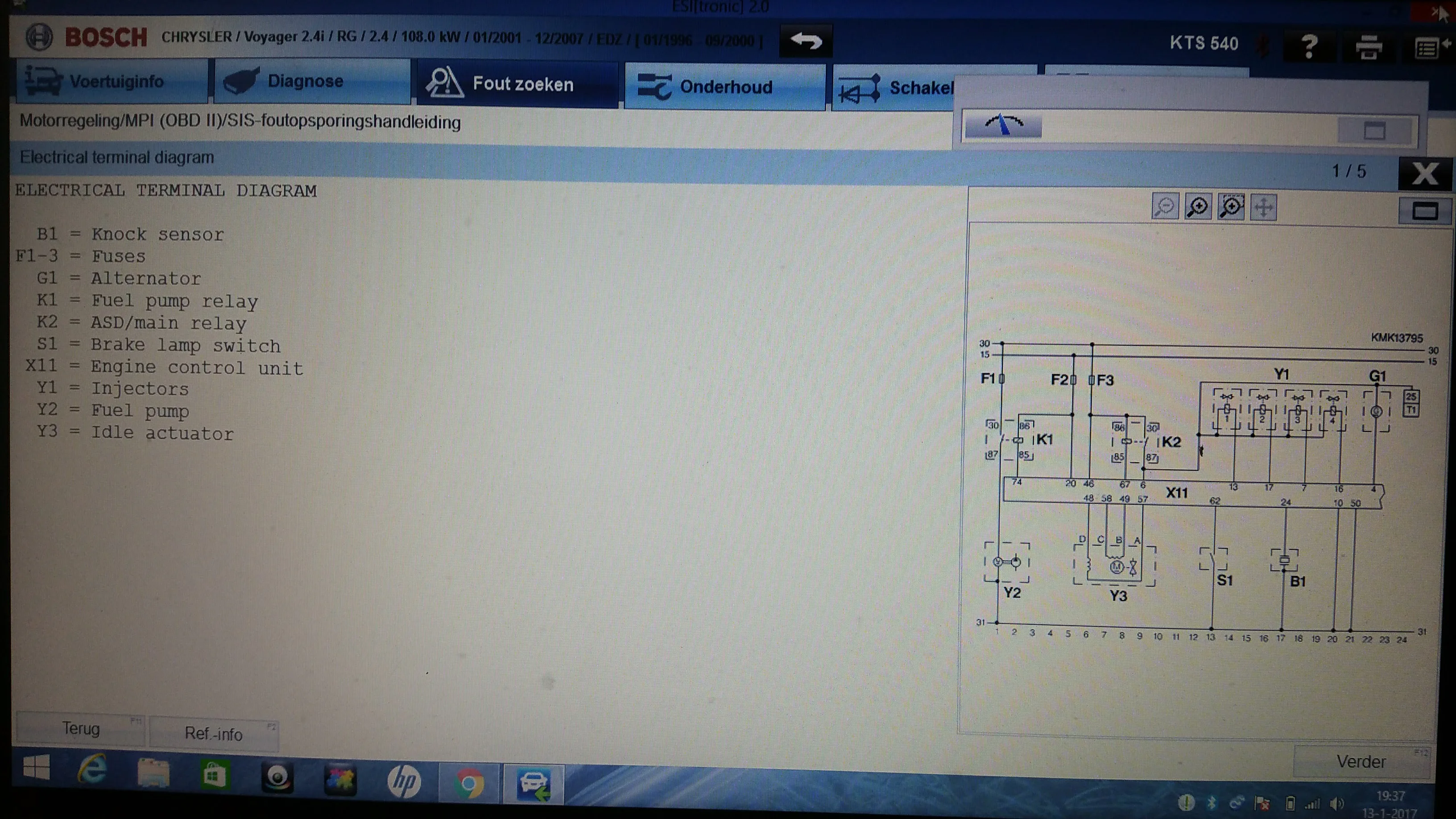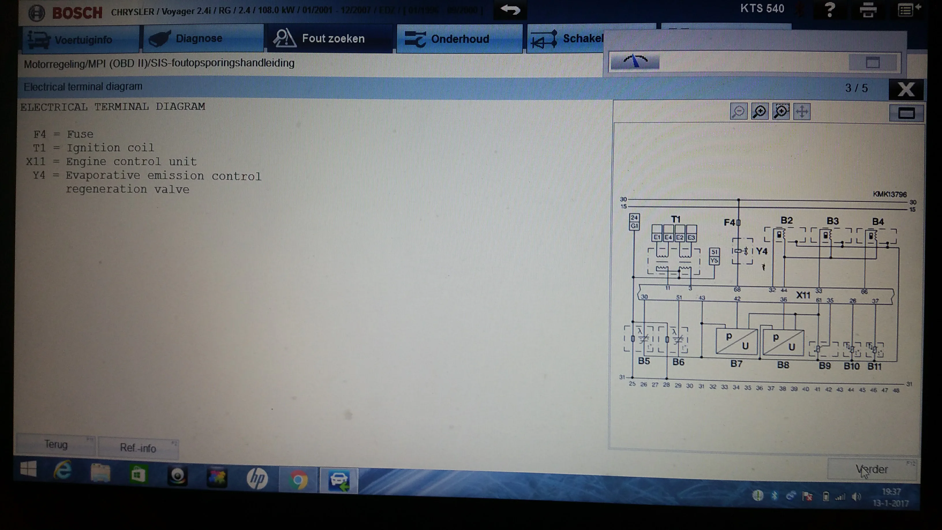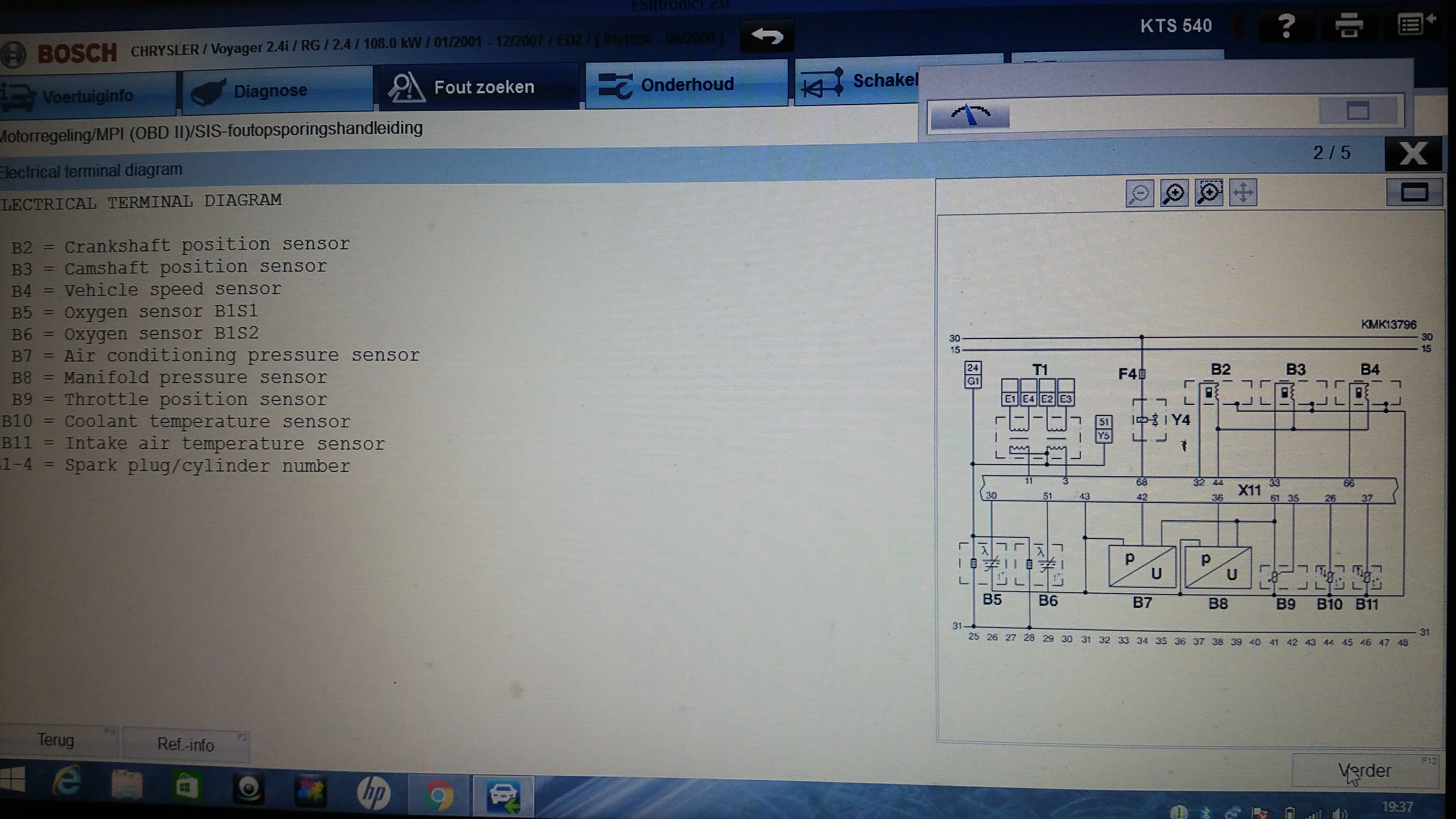 Uitgelezen geen storing aanwezig. data bekeken en bij het starten is er geen toerental data. terwijl andere parameter wel werken. Gecontroleerd of er toch geen startonderbreker op zit. geen leesspoel bij het contactslot. geen aansturing bobine en injector ( krukassensor krijgt massa en 8 volt voeding zoals het hoort ook onder het starten. met scope signaal krukas gemeten. nokkenassensor geeft ook juist signaal wat niet relevant is voor het aanslaan. voeding en massa van ecu gecontroleerd ook onder het starten. metingen zijn verricht bij de stekker van de ecu deze zijn ook gecontroleerd op verbinding zie foto schema. foto fluke stukje van krukassensor signaal te zien.