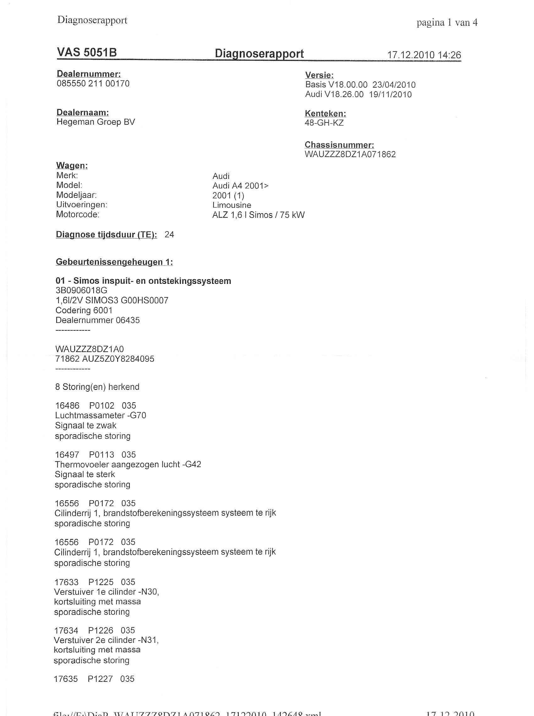 2 weken terug een Audi A4 binnen gekregen met de volgende klacht.