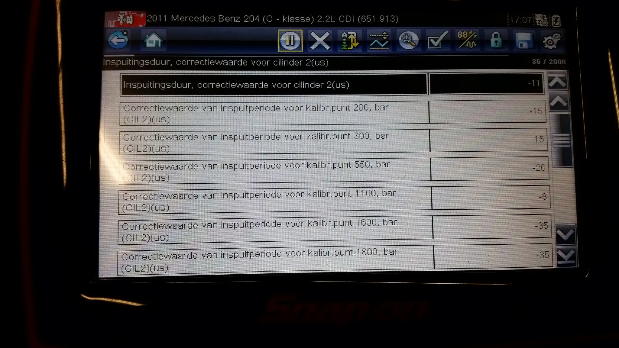 Niets heeft effect, nu heb ik de auto zelf staan en ben even begonnen met de auto uitlezen en de injectorwaardes bekeken, nu zie ik dat injector 4 erg afwijkt. Ben zelf niet zo thuis in het dieselsysteem dus weet de acceptabele waardes niet.