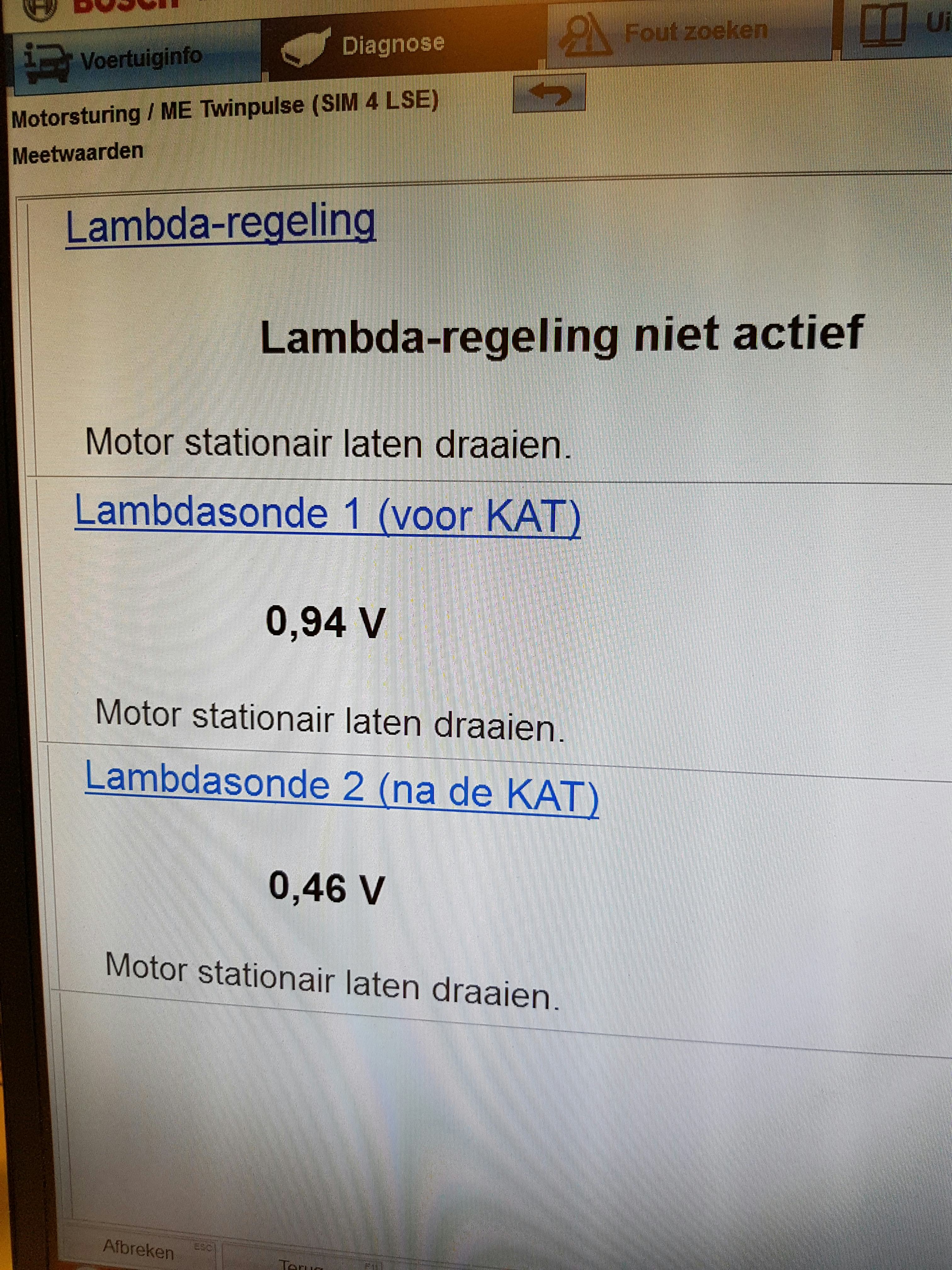 hij blijft continu te hoog Co aangeven ook als wij hem iets valse lucht geven dan gaat hij heel even bij regelen maar dan springt hij snel weer terug naar 0.997 V lambda en een hoge CO waarde