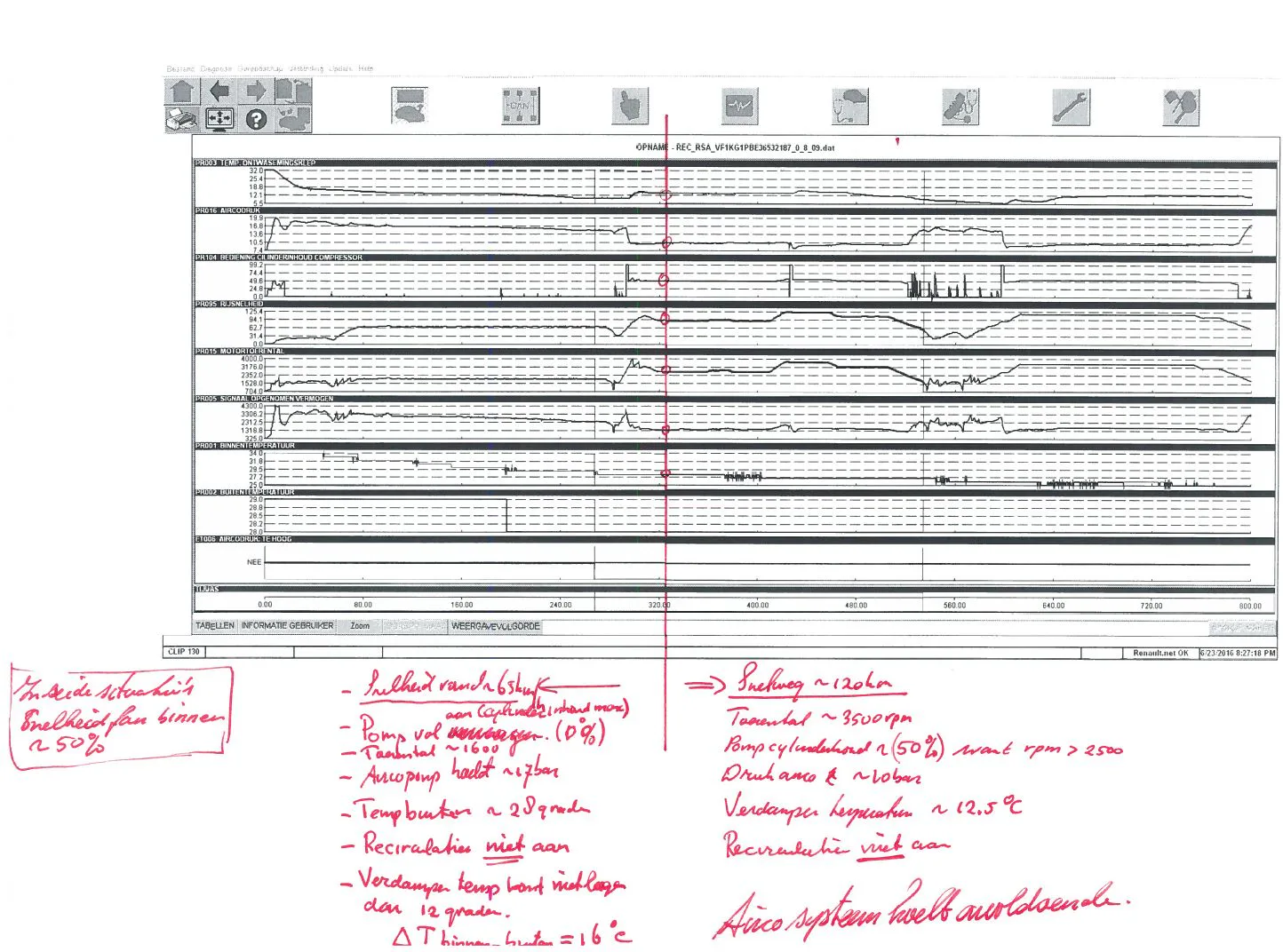 - Systeem afgevuld met 675gram R134a ---> Specificatie Renault is 650gram +/- 25gram