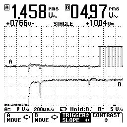 We hebben de voeding van het bedieningspaneel gecontroleerd tijdens opstarten, zie scoopbeeld.