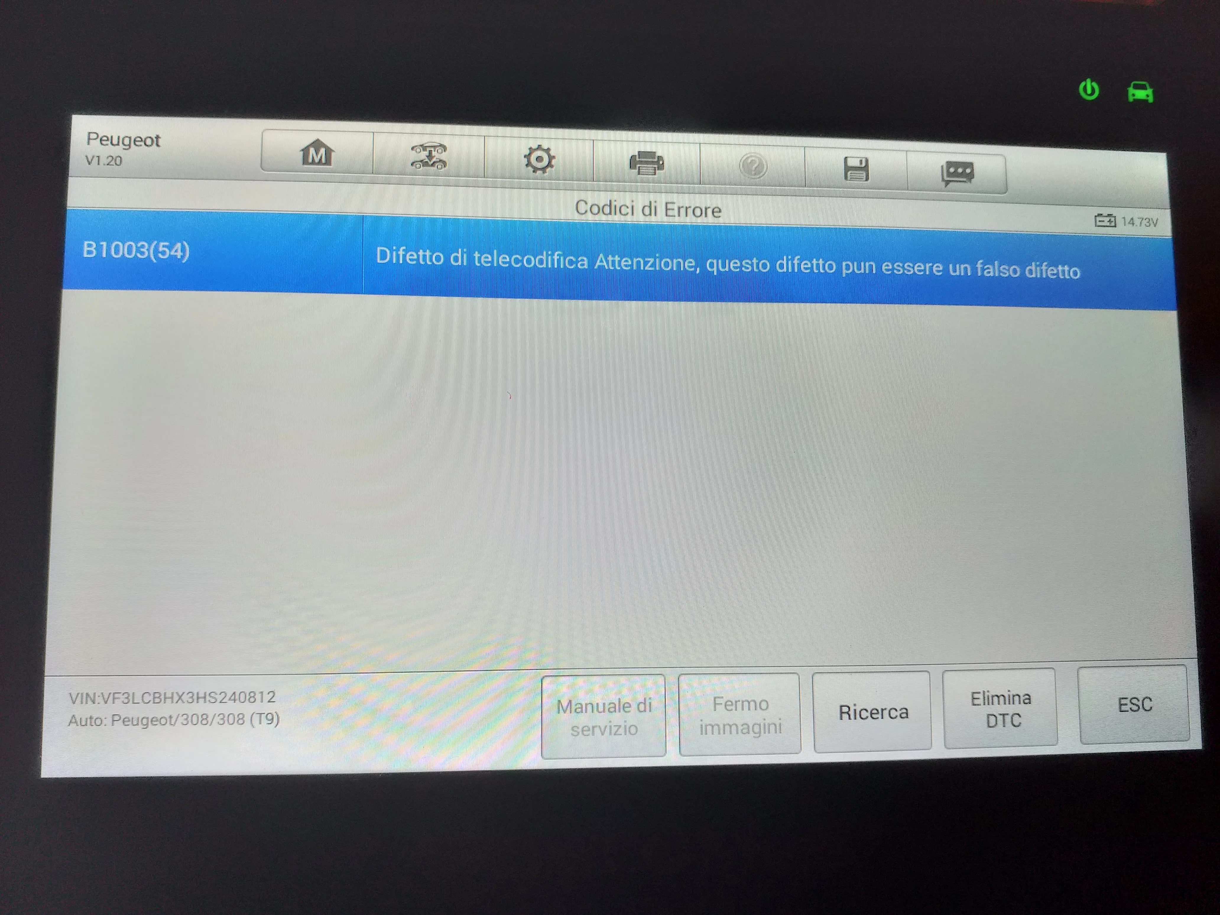 Kreeg dit foutcode niet gewist. B1003(54)sta op dat het een vals defekt kan zijn.sorry maar mijn toestel is in italiaans