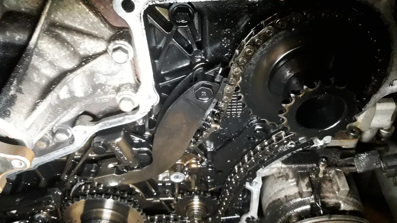Ik zou een volledige ketting en spannerset kunnen plaatsen, meteen met een nieuwe oliepomp maar de kosten lopen snel op, gezien de leeftijd en de hoop dat er geen motorschade is én ik geen duidelijke oorzaak zie is het een moeilijke keuze...