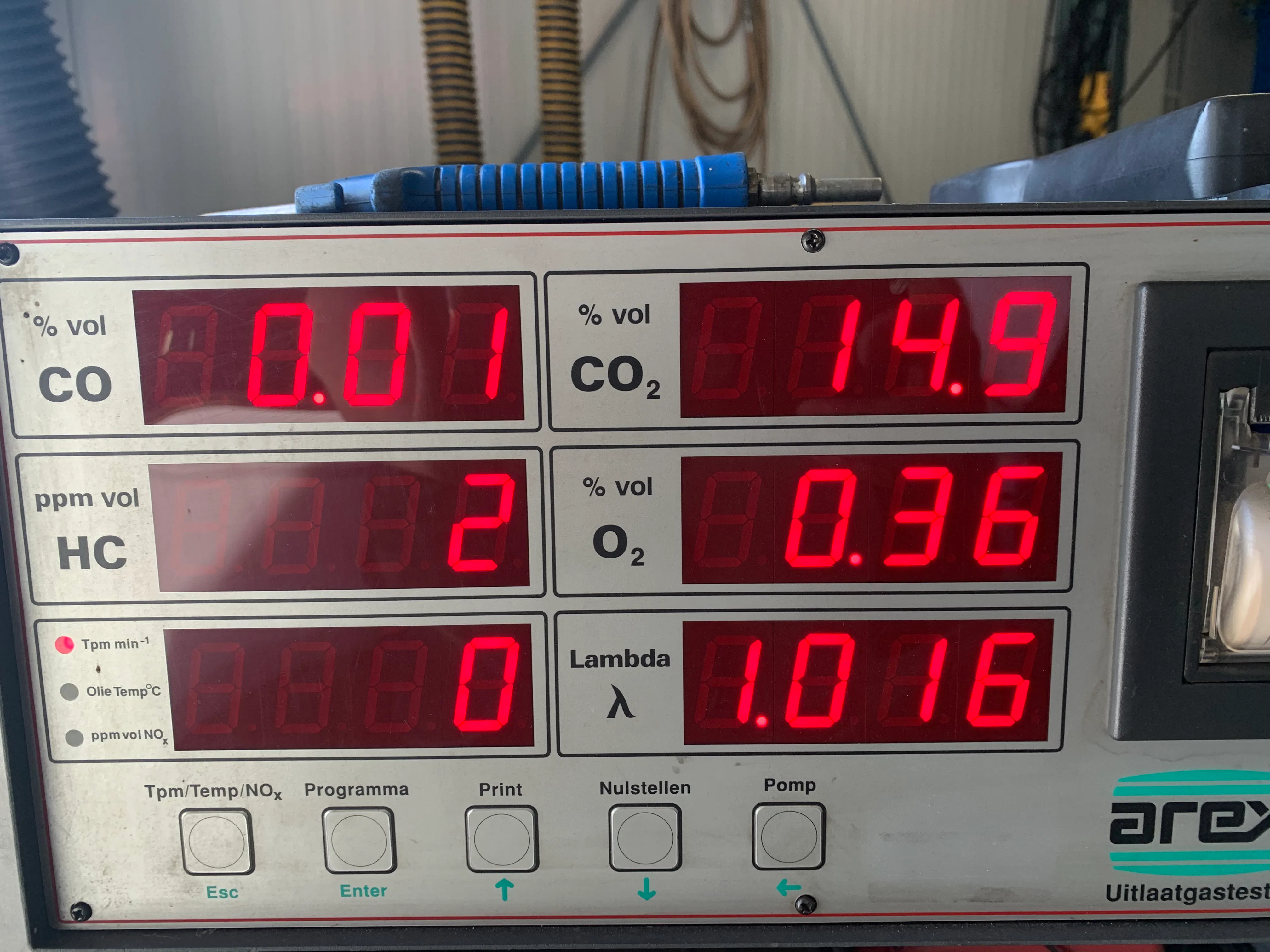 In de bijlage vinden jullie de foto van de viergasmeter zo wel stationair als op toeren.