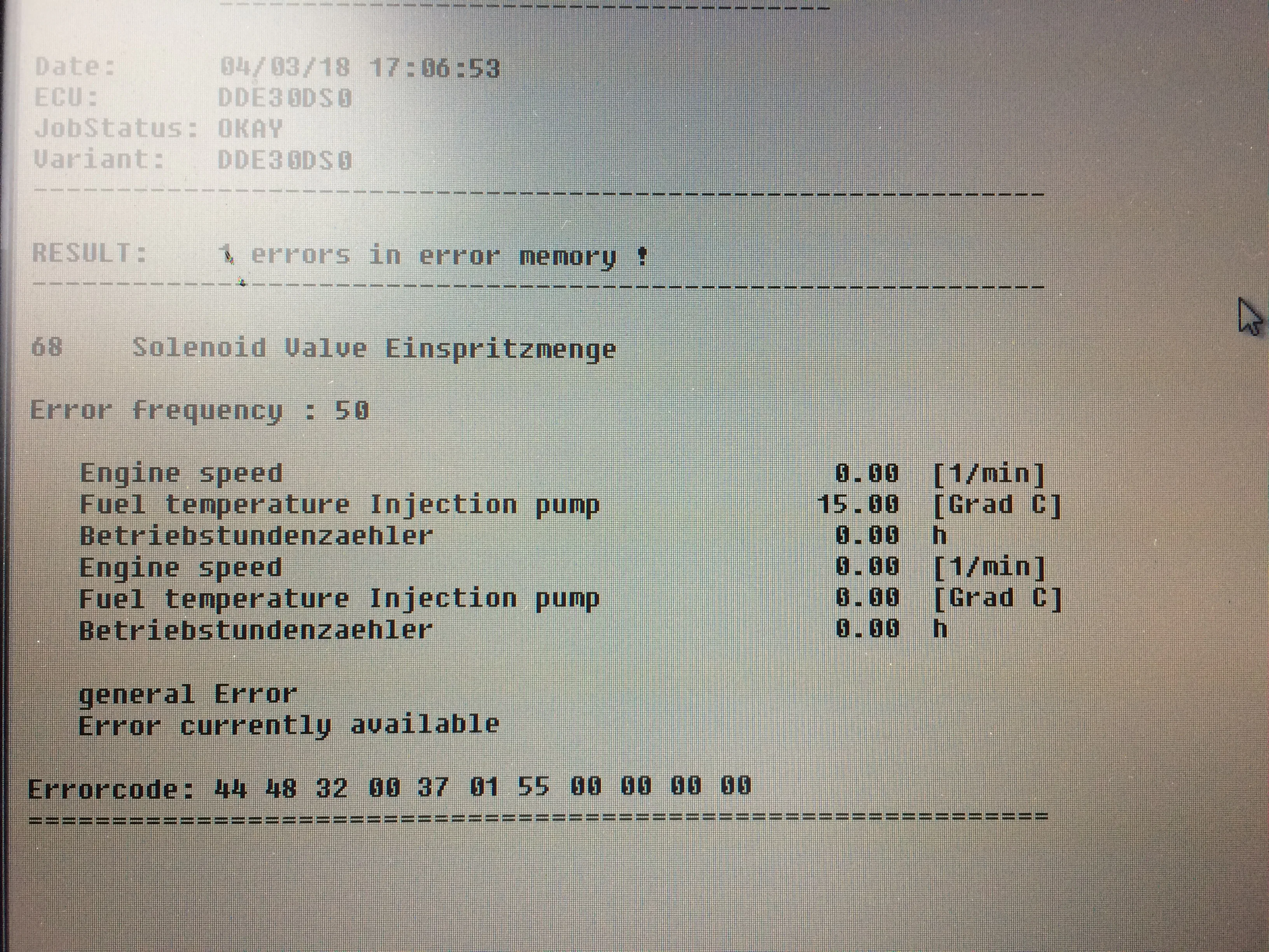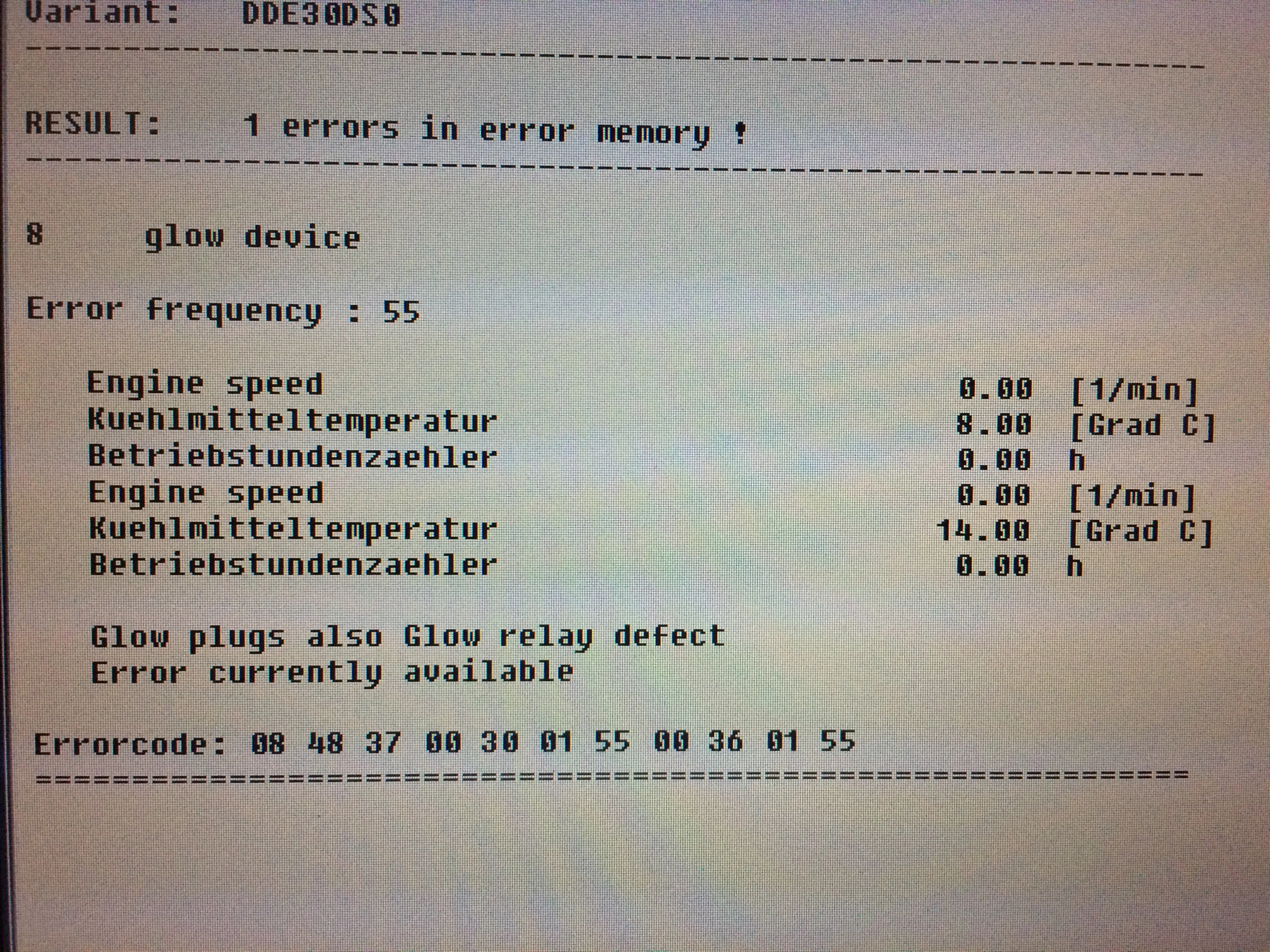 De DDE geeft 2 fout codes, zijnde glowbougies en injectiepomp (zie bijlage)