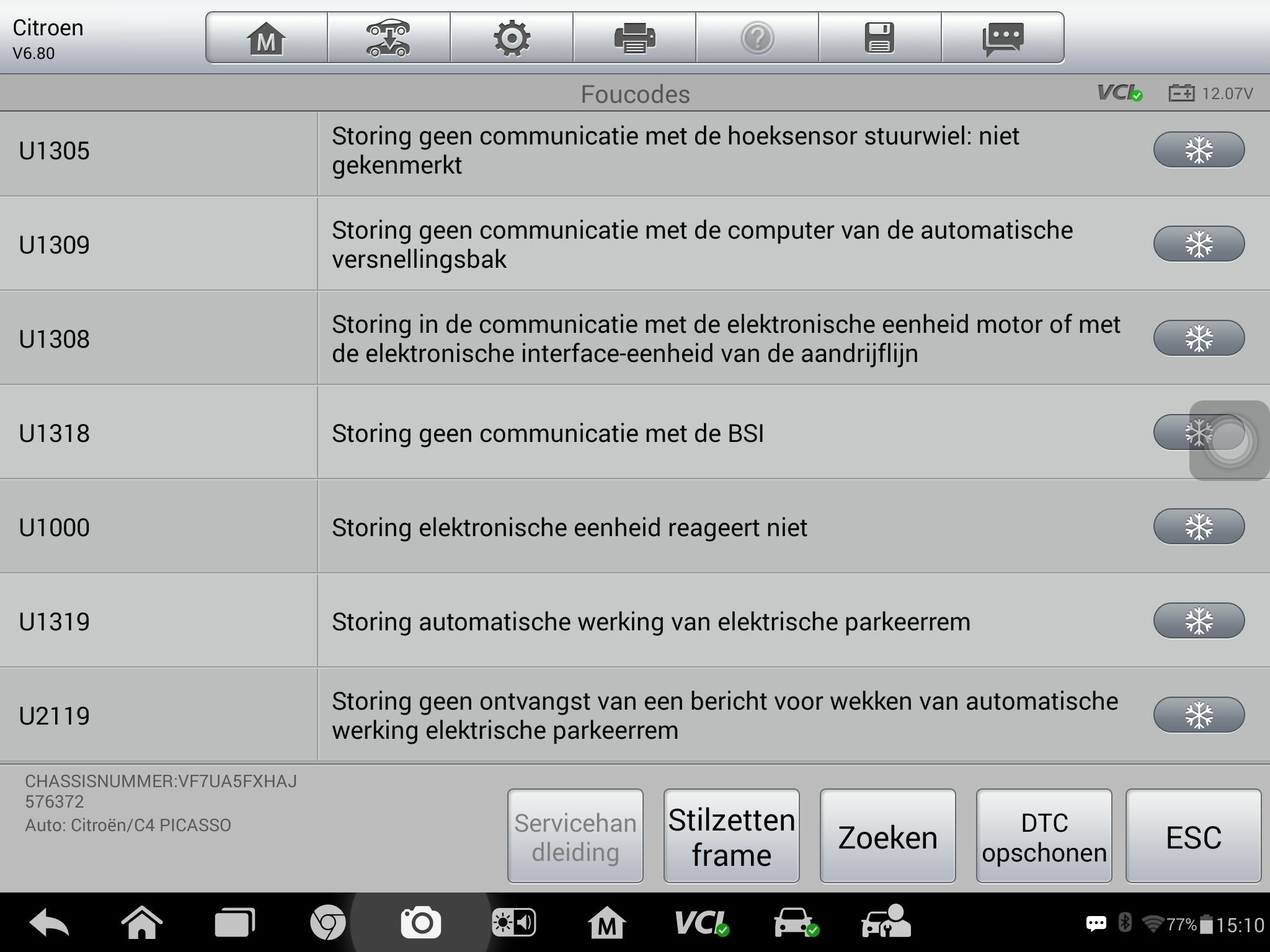 Storingen in de volgende modulen ECU, Automaat, ABS ESP, Parkeerrem en stuurbekrachtiging.