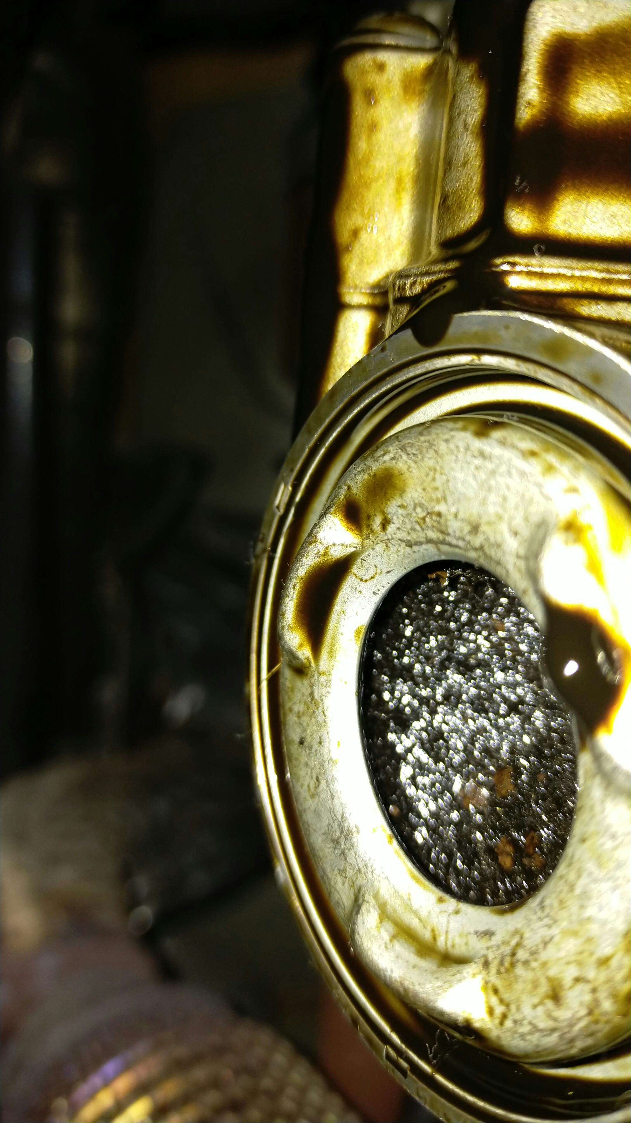 Nu mijn vraag: hoe is het mogelijk dat de zeefjes van de: nokkenasverstellers, oliepomp drukregeling en vacuumpomp vol zitten met deze vuiligheid. zie foto's.