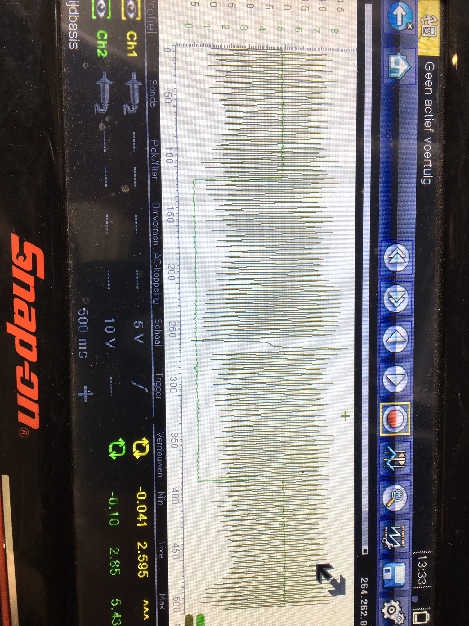 Bijgevoegd een BDP/nokkenassignaal, gemeten aan stekker ECU. Dus ECU krijgt gewoon zijn signaal binnen.