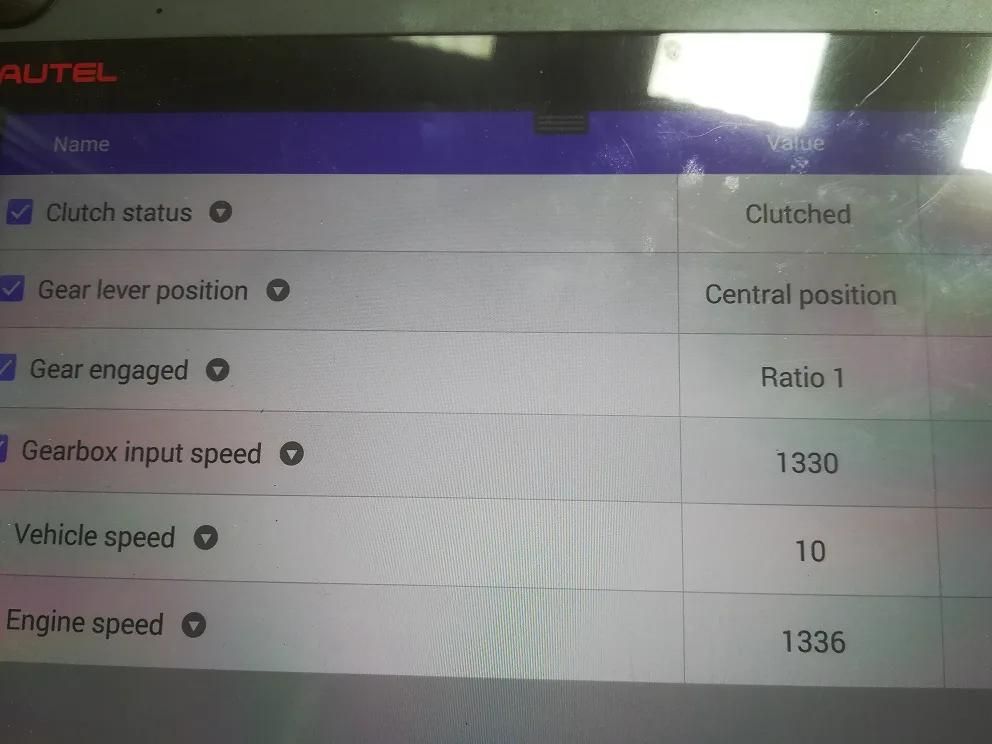Rijden - slip ontstaat net bij toeren maken uit stilstand (vooruit en achteruit). Zodra hij oppakt lopen toeren meteen op in testwaarden en verandert status direct in Clutched en bij doorschakelen komt het probleem vervolgens niet meer voor tot stilstand en weer wegrijden.