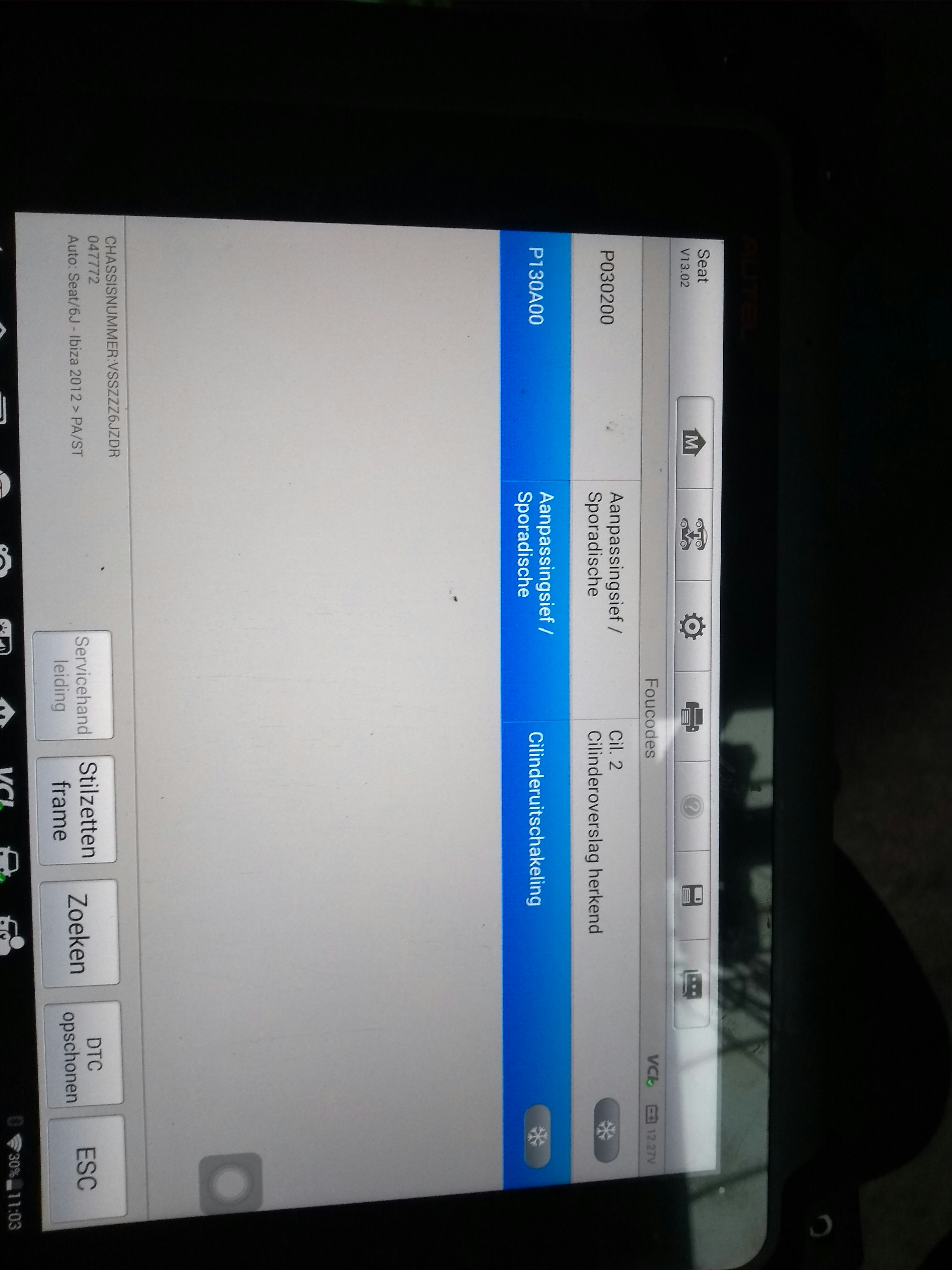 Bij een Seat Ibiza uit 2012 met een 1.2 cgp motor doet het volgende probleem zich voor. De auto slaat geregeld aan op 2 van de 3 cilinders. Na een aantal keer starten is echter het probleem weg. Hiernaast komt het probleem s' winters vaker voor dan s' zomers. Met uitlezen komen de foutcode P130A en P0302 naar voren.
