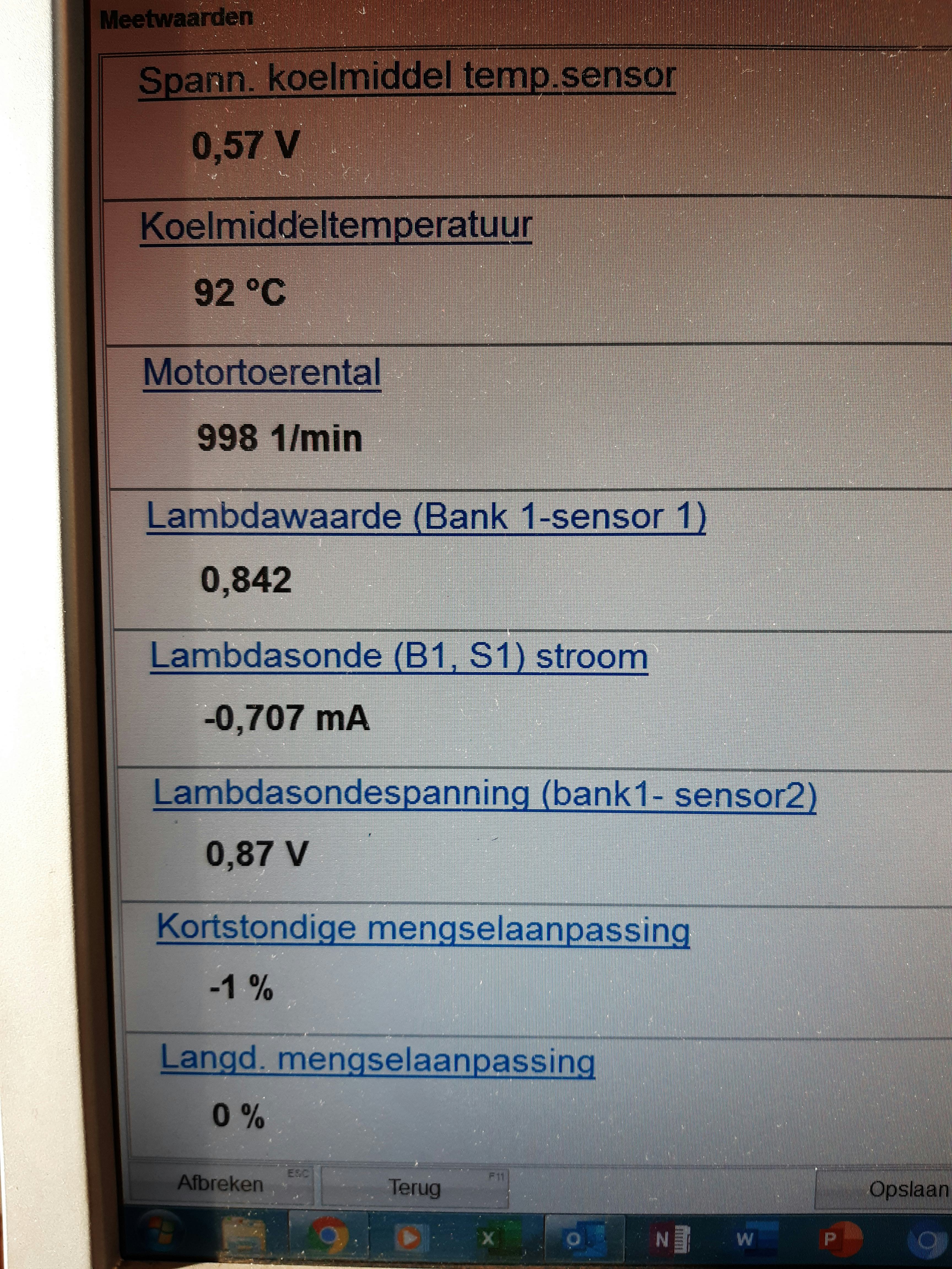 Foto's bijgevoegd van de meetwaarde stat en op toeren