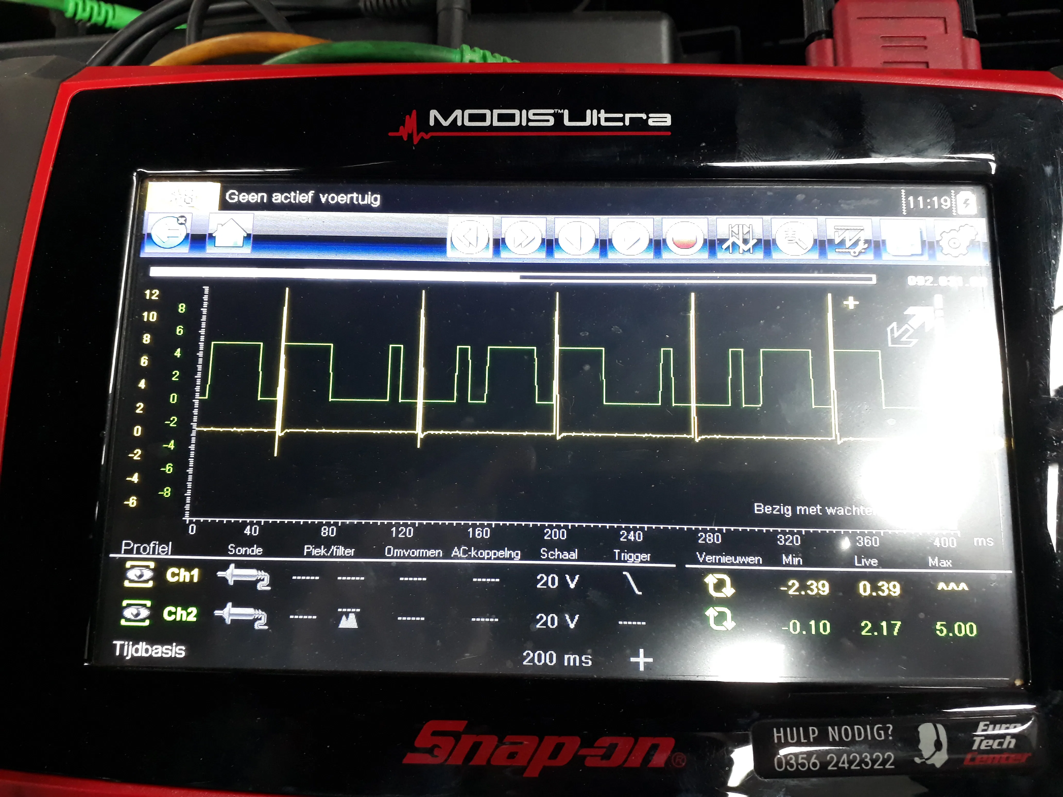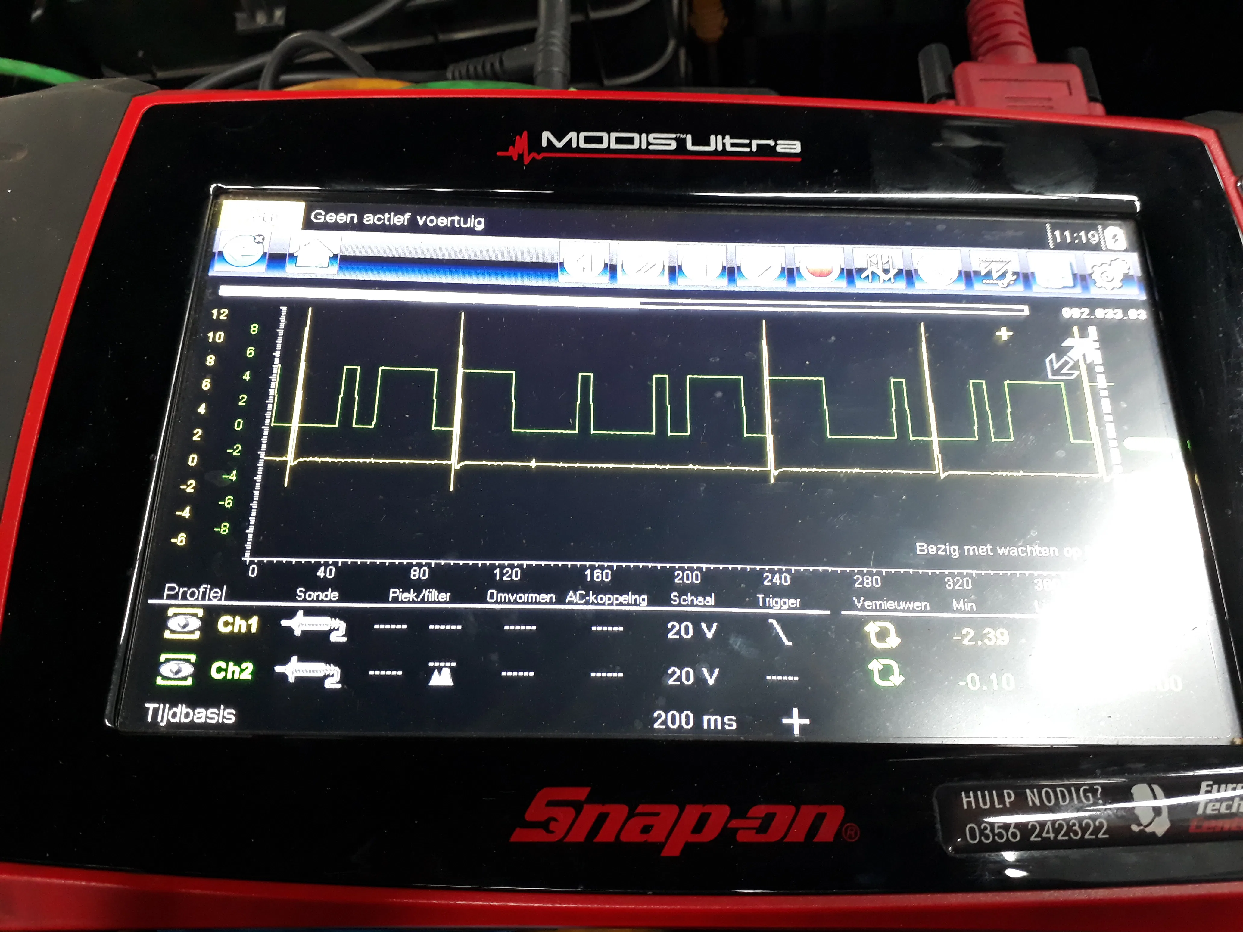 Wat opvalt is dat het stuursignaal naar de injector af en toe wegvalt.