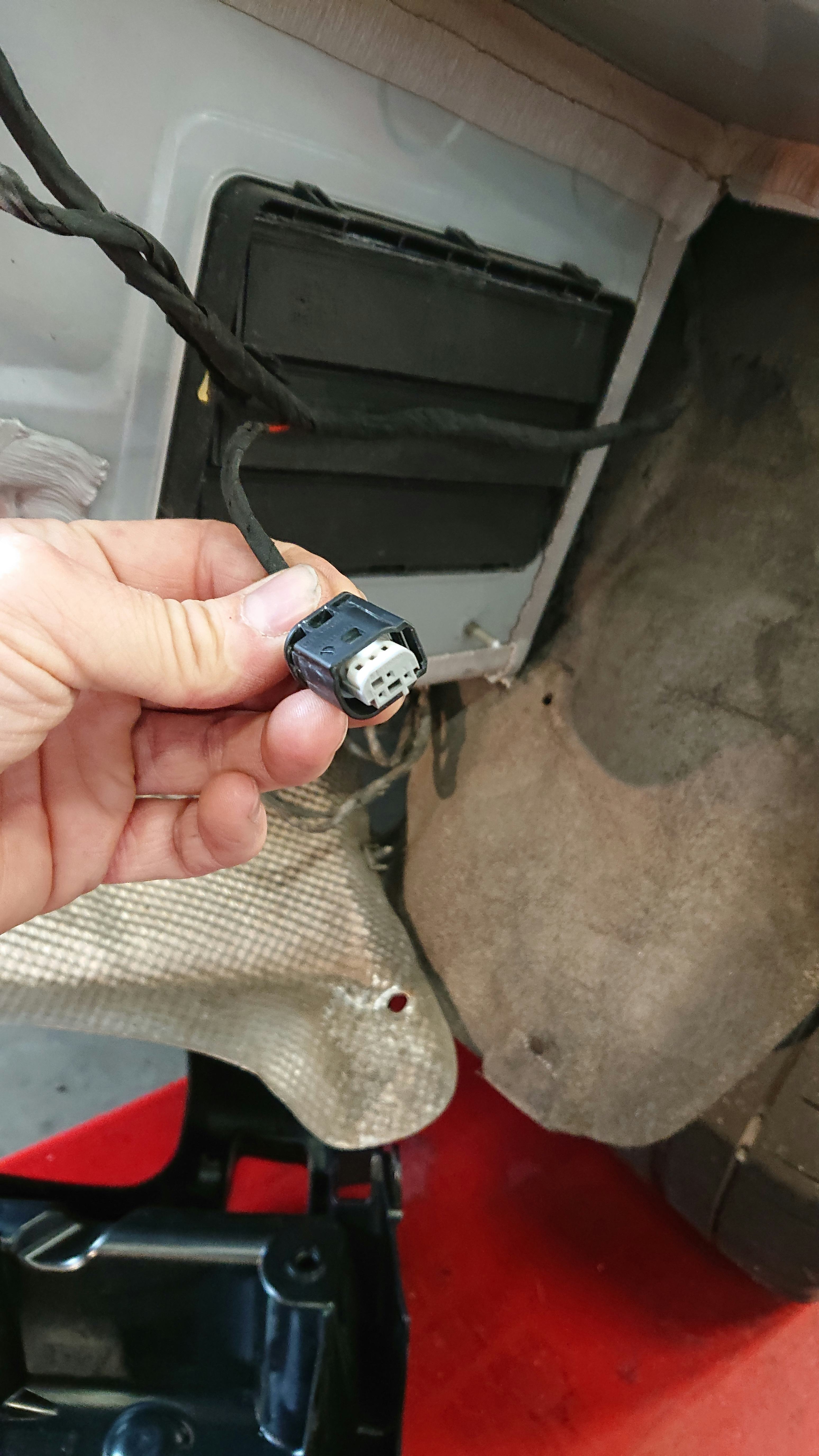 Bij deze X6M is rechtsachter de bumperhoek helemaal weggezaagd(inbraakpoging) en de bumpergeleider bijna helemaal weg. Nu hangt hier een losse stekker, 3pins, (zie foto's) waar niemand van kan zeggen waar die van is. Ook de lokale BMW dealer niet.