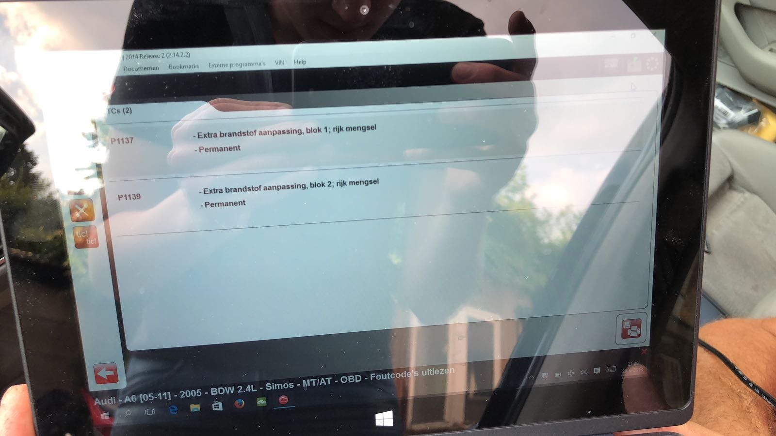 Rijden sinds 4 jaar een A6 2.4. We hebben deze van de eerste eigenaar gekocht bij 235.000km, staat nu inmiddels op 344.000km. Vanaf dag een heeft de V6 nooit echt mooi rondgelopen stationair. Geen foutcodes toen destijds. Nu al geruime tijd zitten P 1137 en P1139 er in. Als ik ze wis zitten deze er vlak erna weer in. Iets later gaat het Mil lampje branden. De auto wordt op tijd onderhouden (15.000km) bougie`s (iridium Denso) Brandstoffilter, PCV klep (vandaag vervangen) kunstof leidingstelsel van de PCV huishouding vorig jaar vervangen. In de basis is alles gewoon goed. Alleen deze foutcodes! Distri. ketting vervangen bij 155.000km. Voor de rest rijdt de auto gewoon goed. Verbruik ook allemaal wel netjes. Maar ik kan eigenlijks niet iets ontdekken wat dit nu veroorzaakt. Heb ook al eens de twee solonoids van de nokkenassen links en rechts uitgewisseld, bobines uitgewisseld, injectoren evenzo....alles geeft niet de oplossing. wat wel opvalt is dat op bank 1 (cil 1,2 en 3 ) misfires naar voren komen. Op bank 2 (cil 4,5 en 6 niet. (staionair gemeten) de correctie op de lambdasondes is ook zo ongeveer -25%.