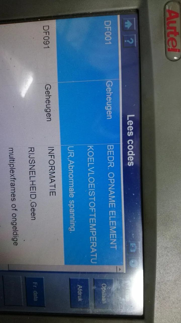 Uitlezen geeft een vreemde foutcode (DF091 - BEDR. OPNAME ELEMENT KOELVLOEISTOFTEMPERATUUR,Abnormale spanning.)