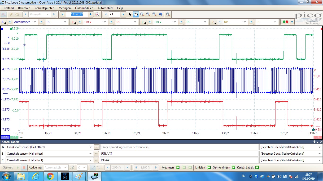 Timing gecontroleerd met oscilloscoop (geen referentie)