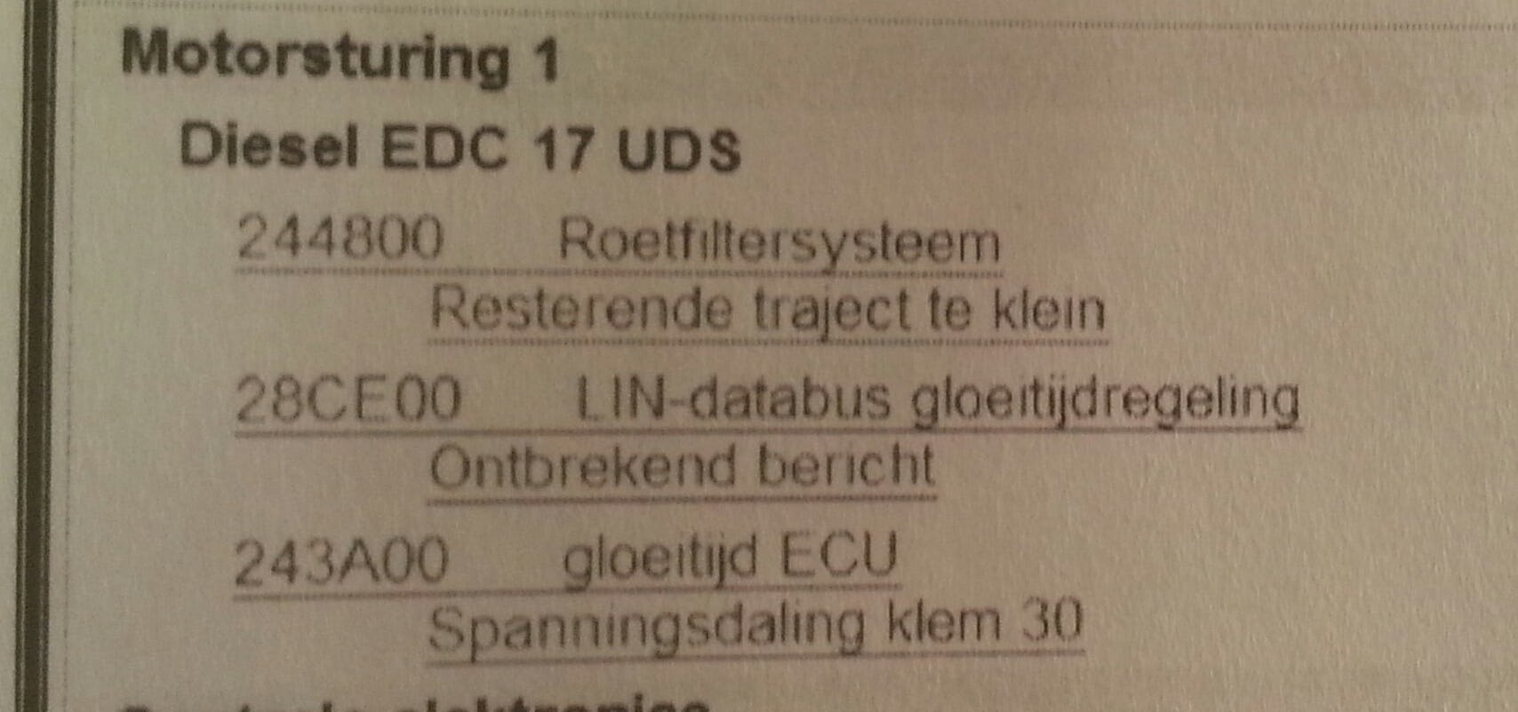 Storingscode: 244800 Roetfiltersysteem resterende traject te klein