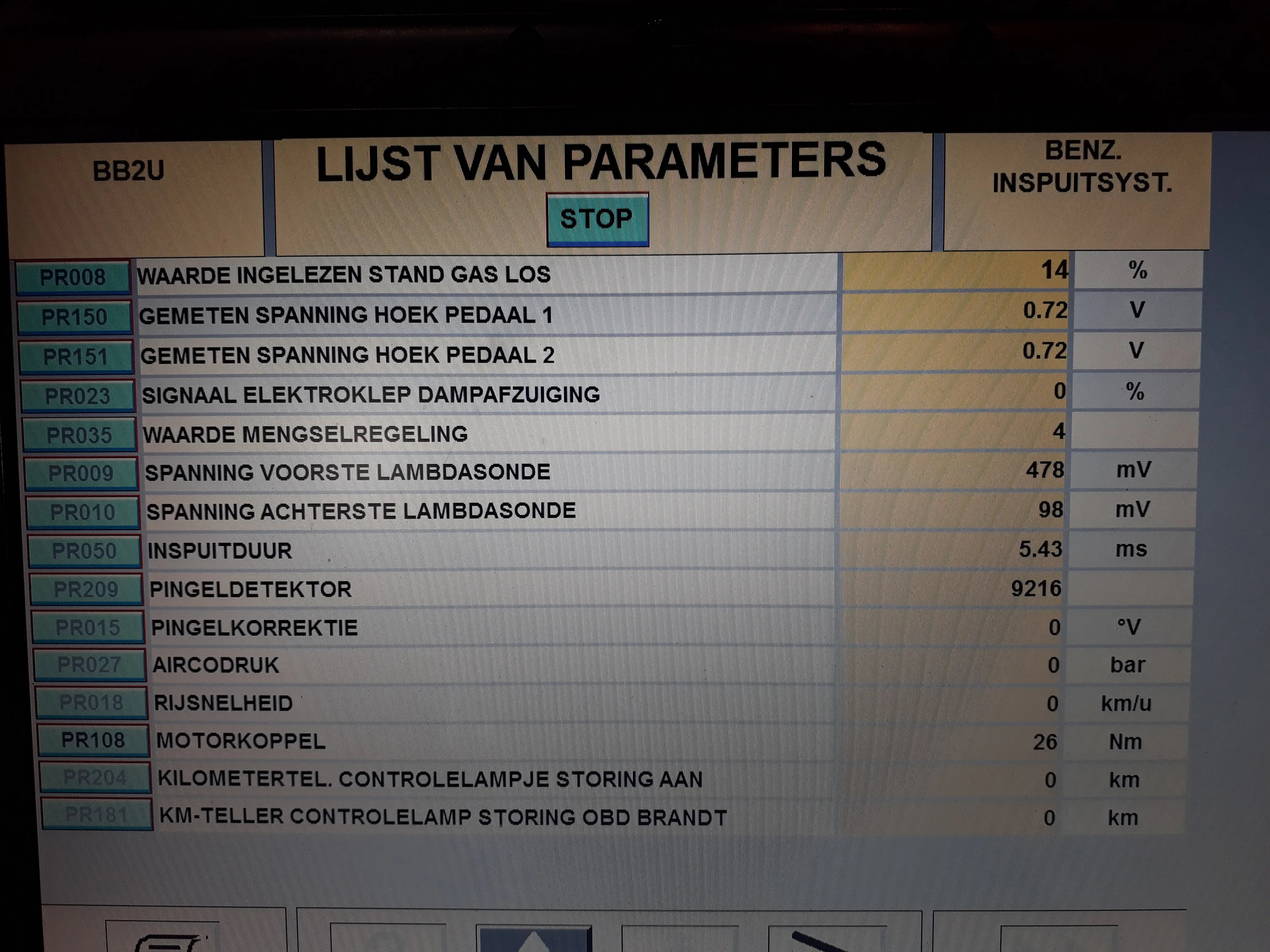 ik heb data kunnen lezen bij stationair slecht draaien van de motor