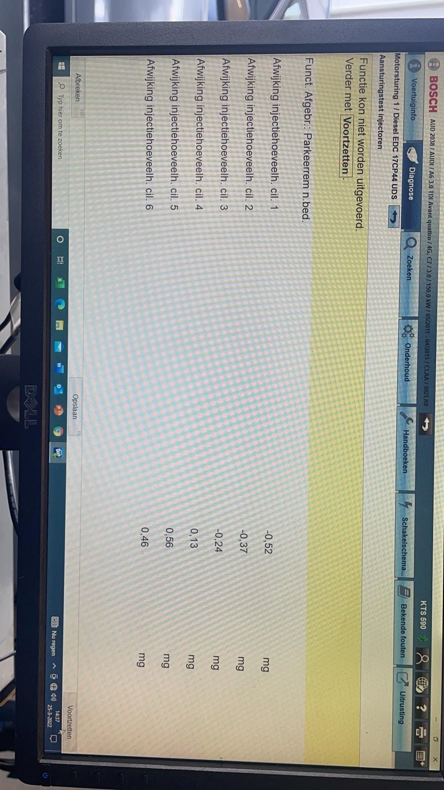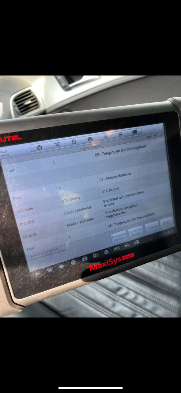 Filter brandstof is vervangen, raildruk lijkt ok, verstuivers hebben allemaal minimale afwijkingen: