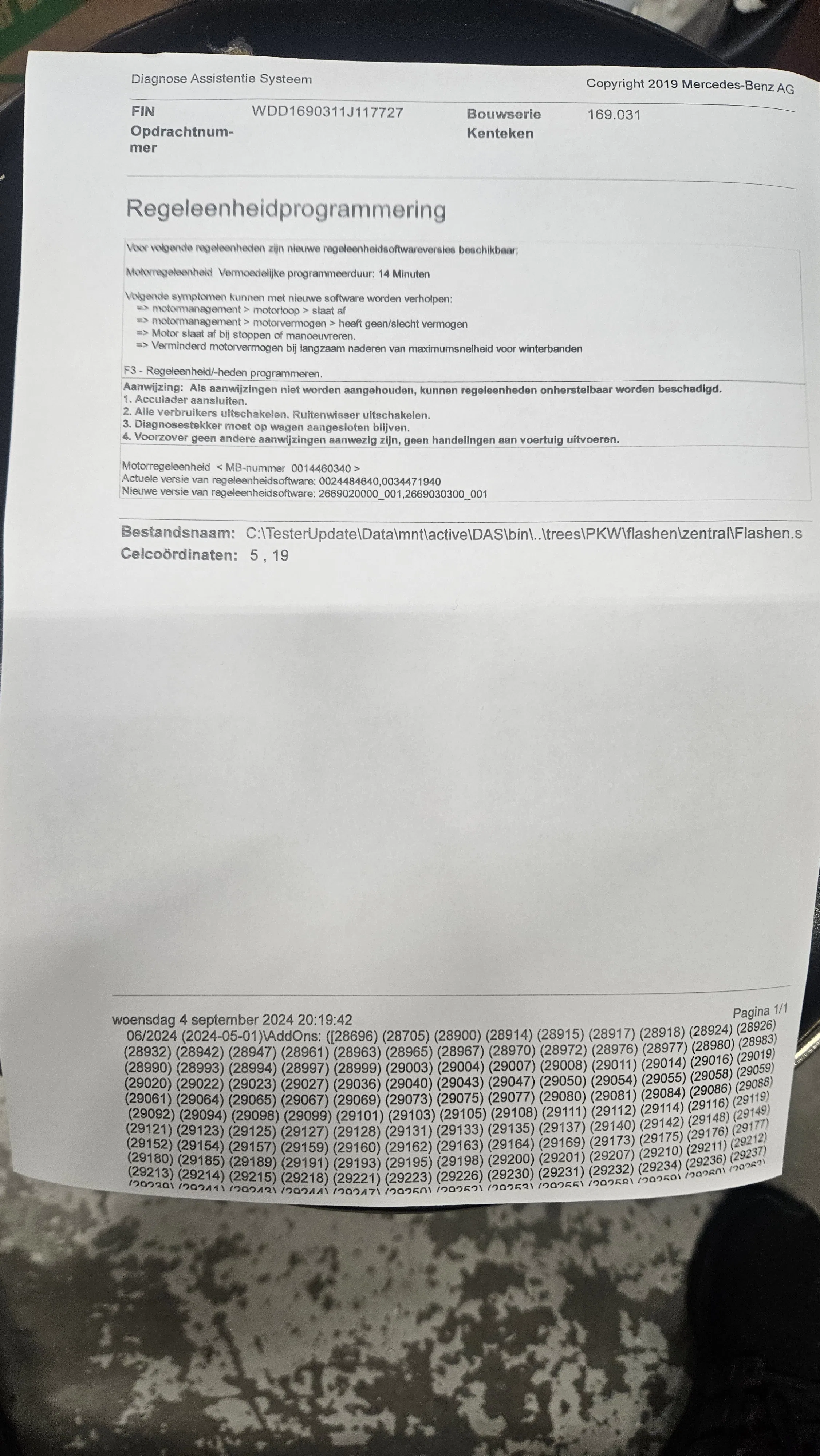 Uiteindelijk software update uitgevoerd voor de motor en v.bak, zie bijlagen. had gehoopt dat dit zou helpen maar t is nog steeds het zelde..