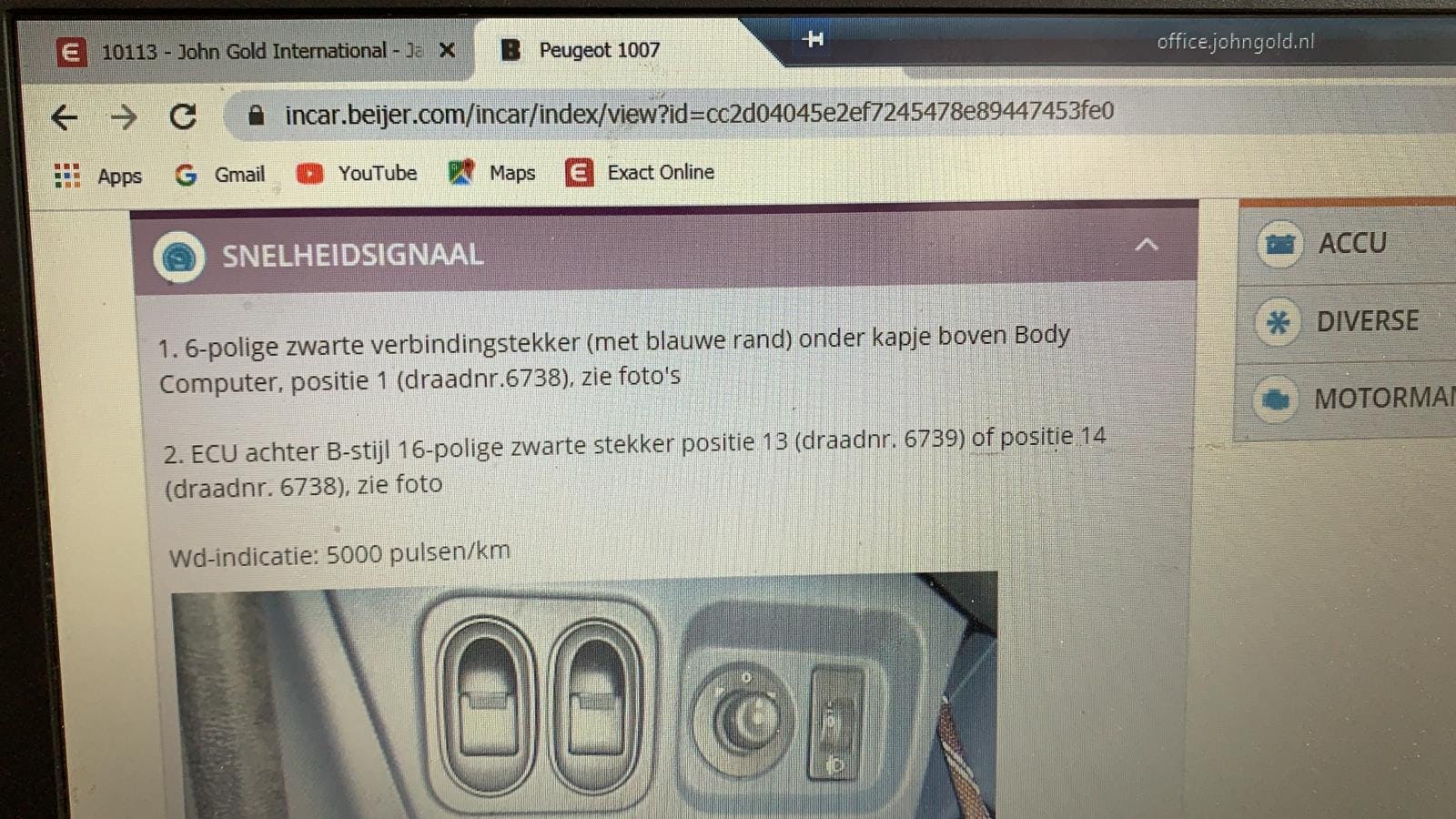 Volgen de gegevens moet ik een 6 polige stekker met blauwe rand boven de bsi hebben . Deze is niet aanwezig .