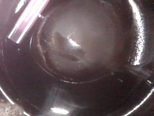 Compressie cil 2=0 Beeld van zuiger met endoscoop, barst goed zichtbaar, motorolie voor 3/4 verdwenen uit carter.