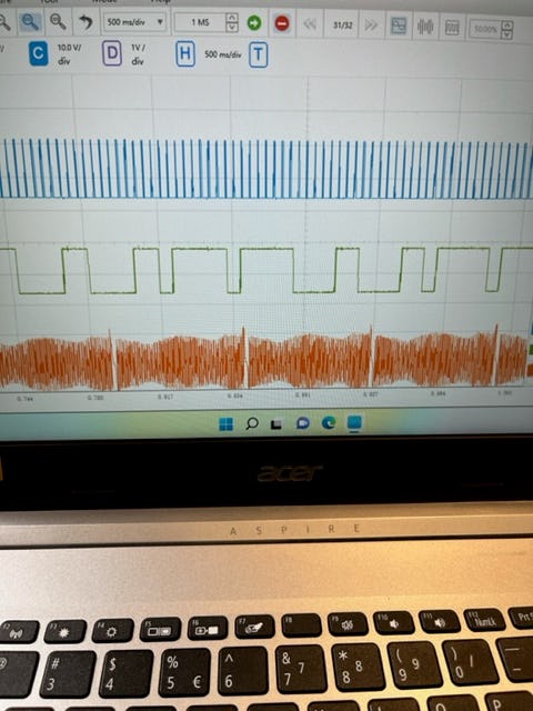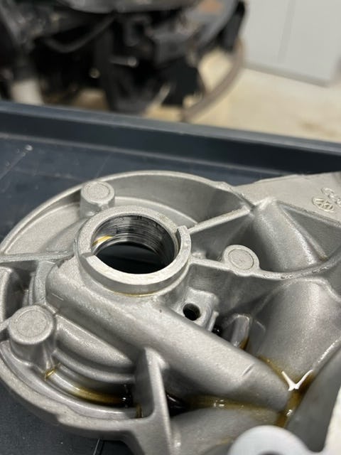 P0341 nokkenasstandsensor; onaannemelijk signaal. Met de Autel MaxiScope een meting gedaan. (Zie foto 4). Zo hoort het signaal te zijn. (Zie foto 3). Zo hoort het dus niet te zijn. De foutcode treed dan ook op. Na een aantal zaken gecontroleerd te hebben zijn we erachter gekomen dat de nokkenas brug helemaal ingelopen was. (Zie foto's 1+2). Het zeefje was ook deels weg, oorzaak -> gevolg.