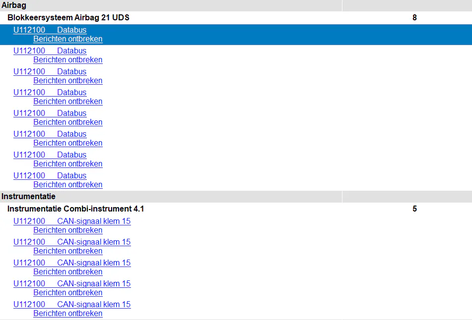Bij ons in de werkplaats een Skoda Octavia uit 2019 met zeer veel storingen. Er verschijnen, als de auto in storing schiet, ook diverse foutmeldingen en storingslampjes. Ook wordt het vermogen beperkt tot max. 3000 RPM