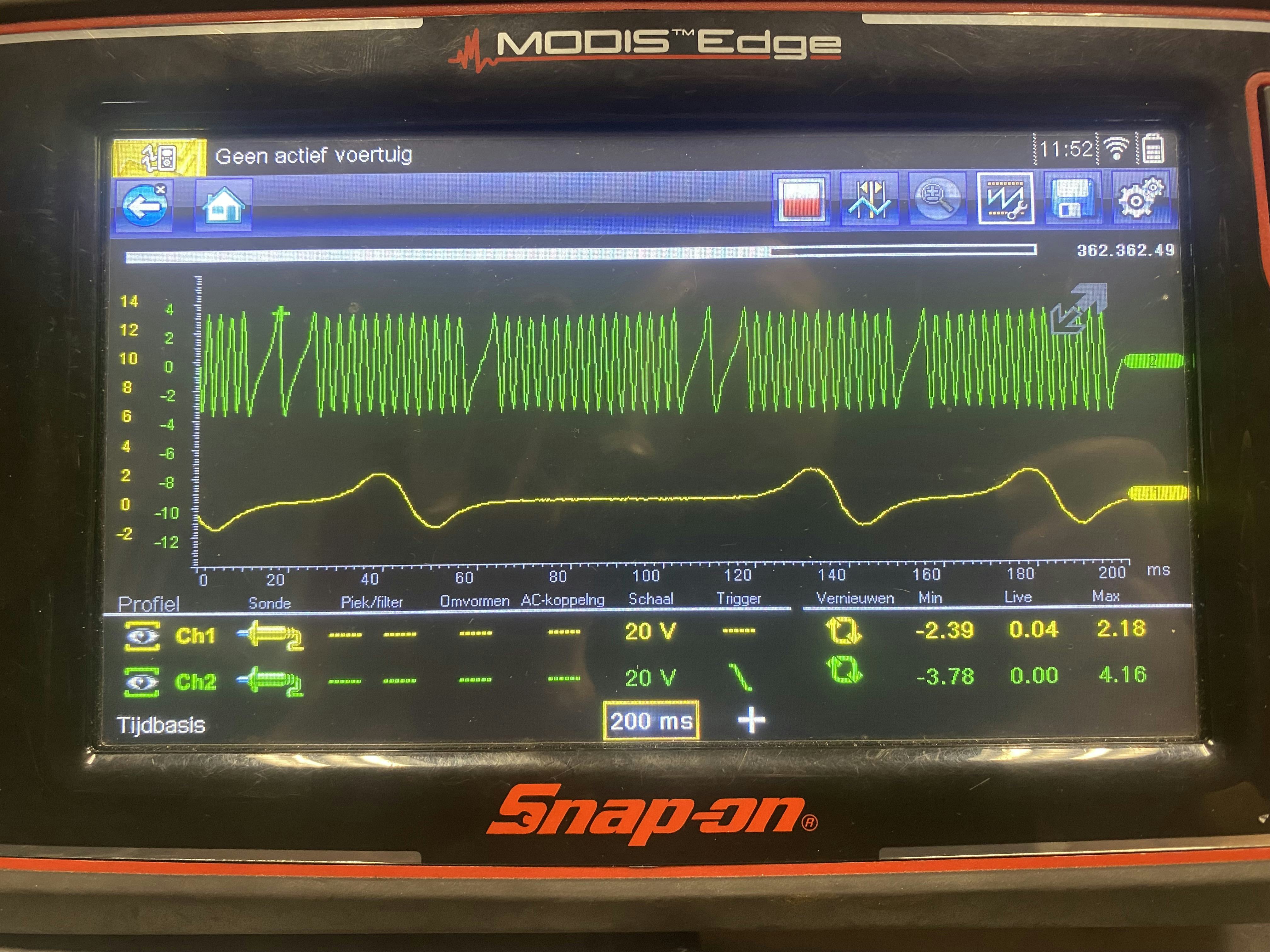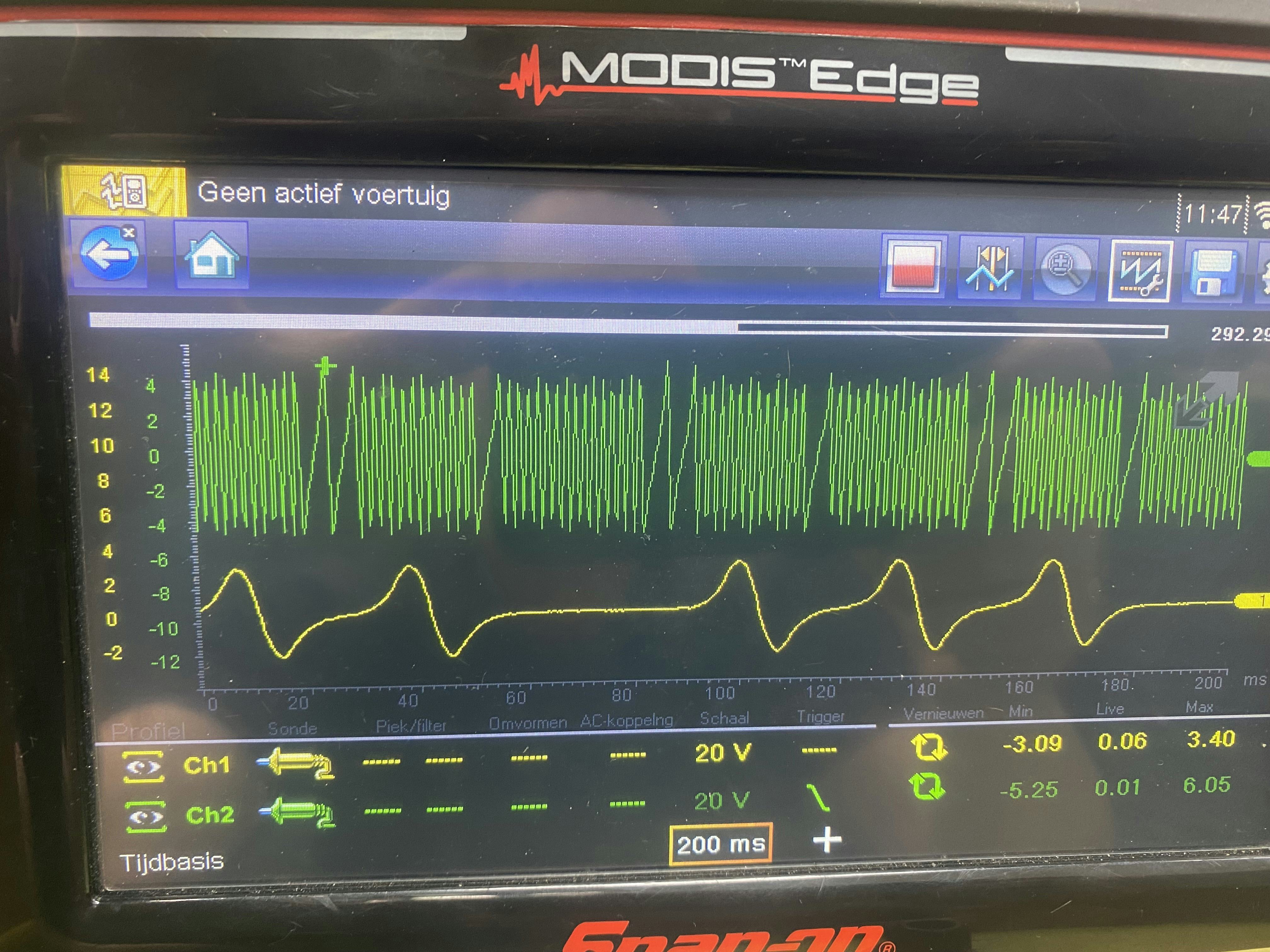 kan via Bosch tester of dergelijke geen goed scopesignaal vinden. dus ook niet vergelijken.