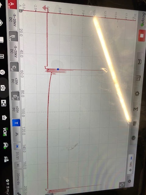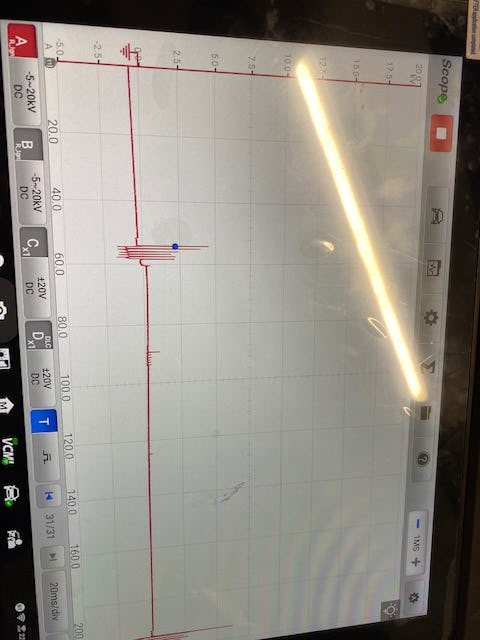 Ik heb de volgende waveform gemeten met de scoop maar ik heb dit nog niet zo vaak gedaan, ik zie duidelijk verschil in de ''spike''. Wat vinden jullie hiervan?