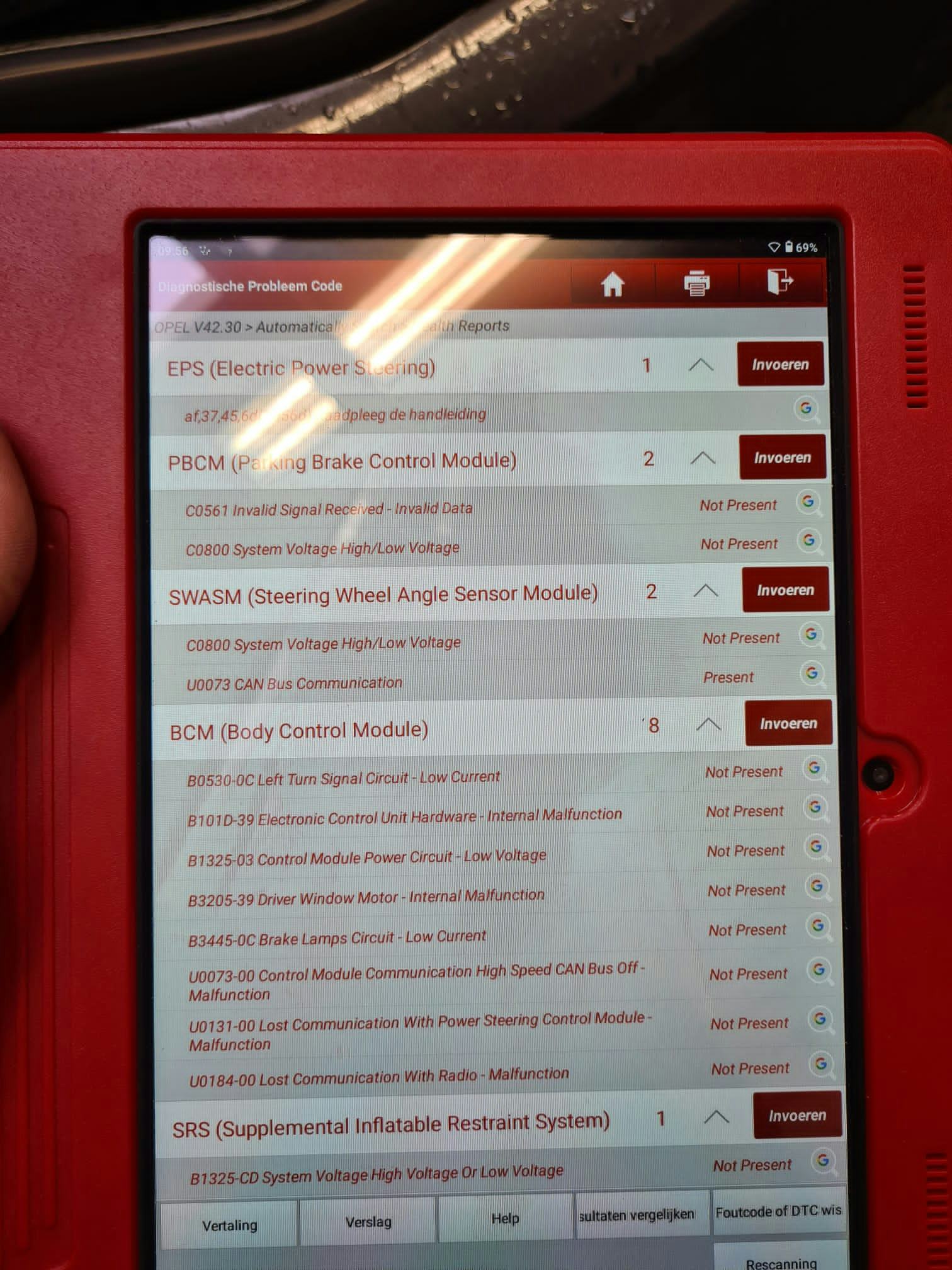 Was een foutcode van de Eps Pdc Stuurhoeksensor en Srs en Bcm