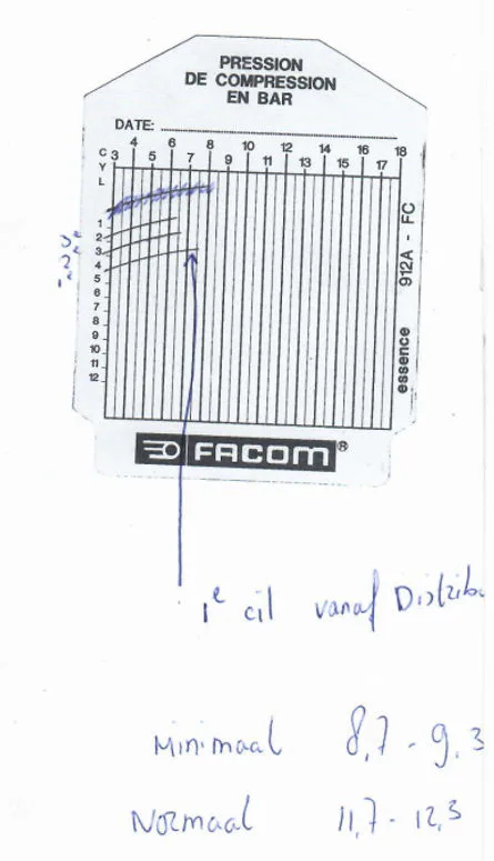 Compressie gemeten zie foto compressie De drukken zijn wel erg laag maar is dit wel de oorzaak van de foutcodes op de pingelsensor??