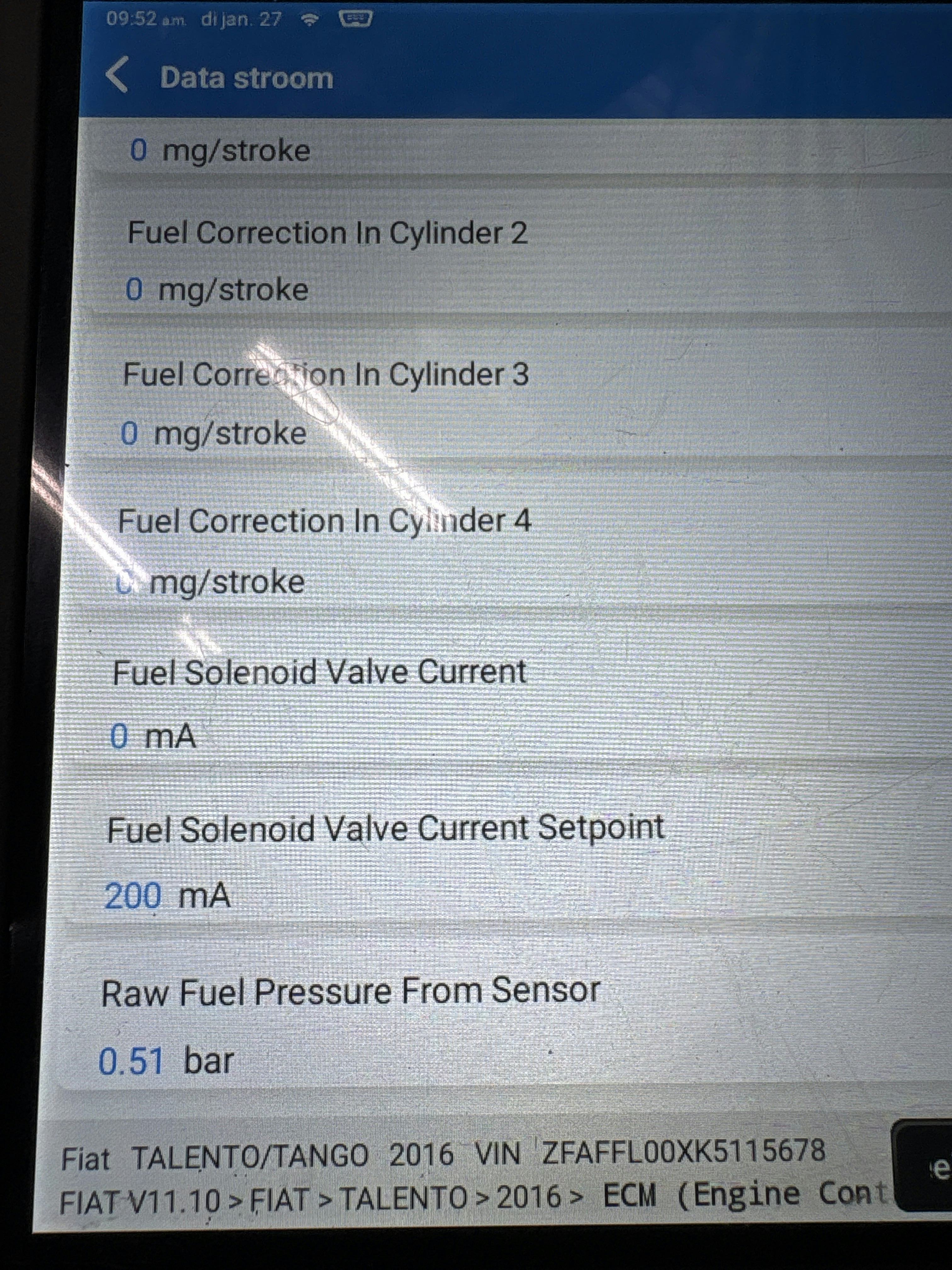 er zijn geen problemen met de Immo, hij heb krukas/nokkenas signaal. Is tevens ook gesynchroniseerd. Wat het zo lastig maakt is dat hij geen enkele foutcode heeft. Ik dacht aan misschien gruis in het hogedruk circuit, maar geen gruis kunnen vinden, ook niet in het dieselfilter. Ik heb ook gekeken naar eventuele TSB’s. Maar geen TSB’s kunnen vinden gerelateerd aan dit probleem. Benieuwd naar jullie ervaringen en of jullie tips hebben.