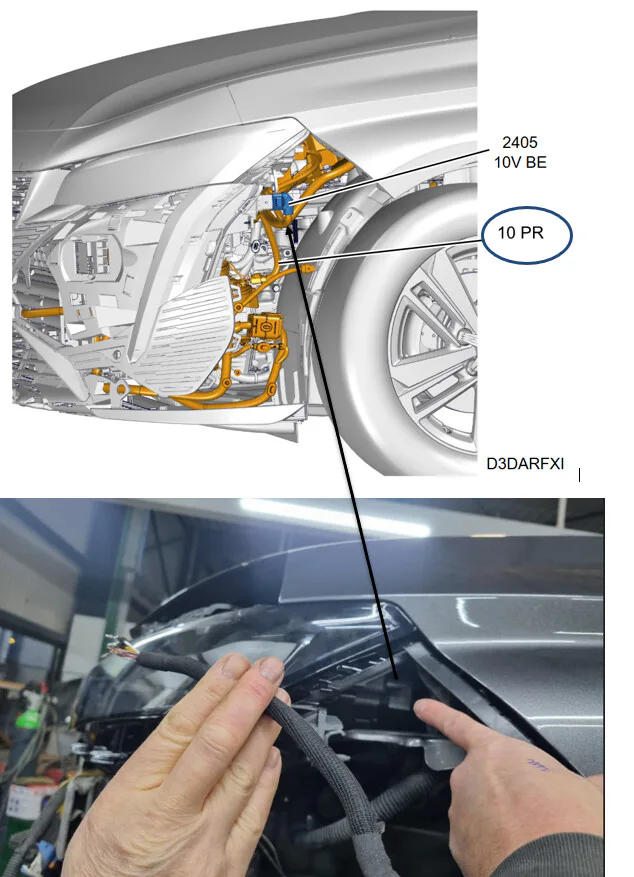 Betreft: Zoektocht juiste kabelboom en draadnummer onderdeel tussen koplamp links (9839286380) en led dagrijlicht links (9835389680), De kabel hiertussen is kapot getrokken door het ongeval. Het is een kabel tussen deze twee onderdelen, vreemd genoeg vinden we nergens de te bestellen kabel gezien nummers weg zijn door ongeval.