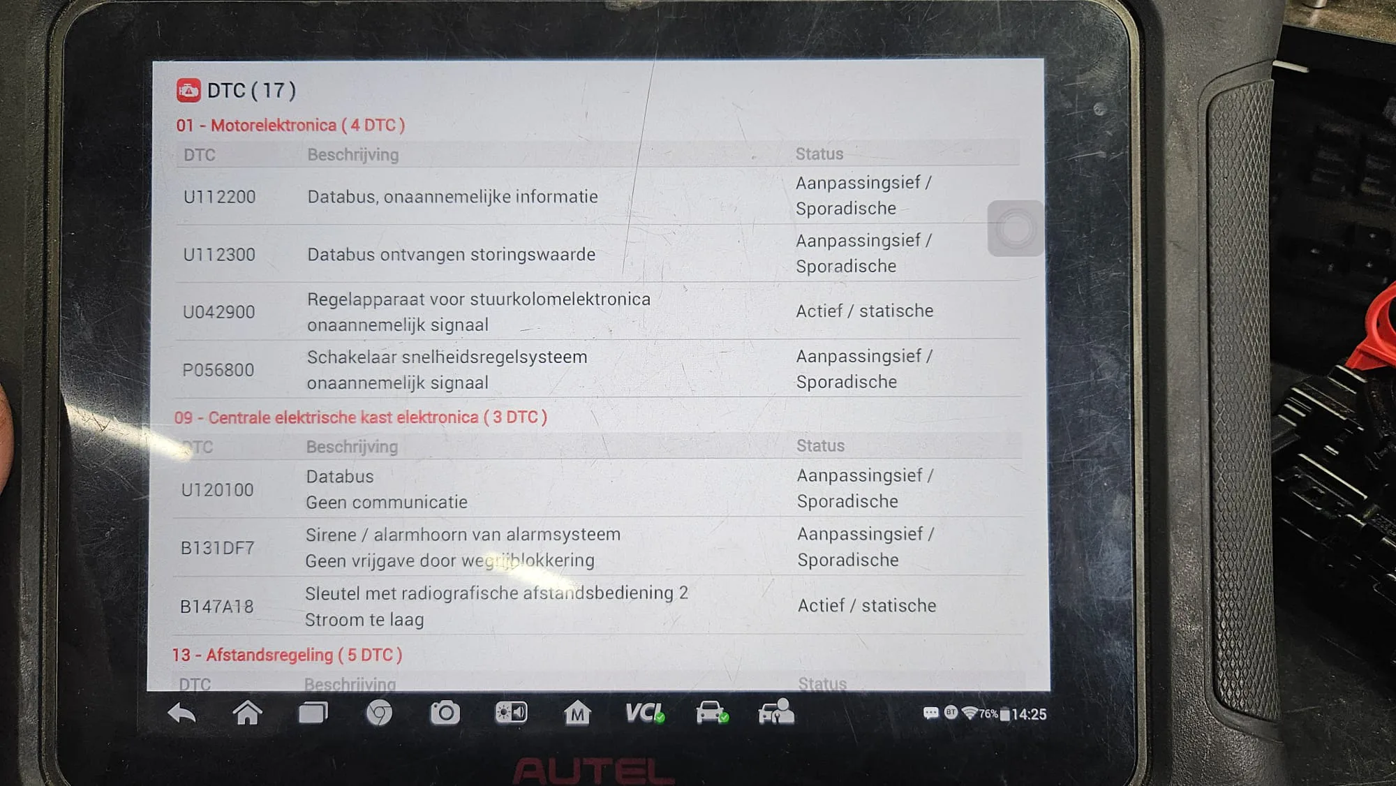 voeding en massa van de stuurwielbediening module gemeten, die waren goed, de zekeringen natuurlijk aangekeken en het canbus signaal met de scope in beeld gebracht. Hier allemaal niks aan te vinden.