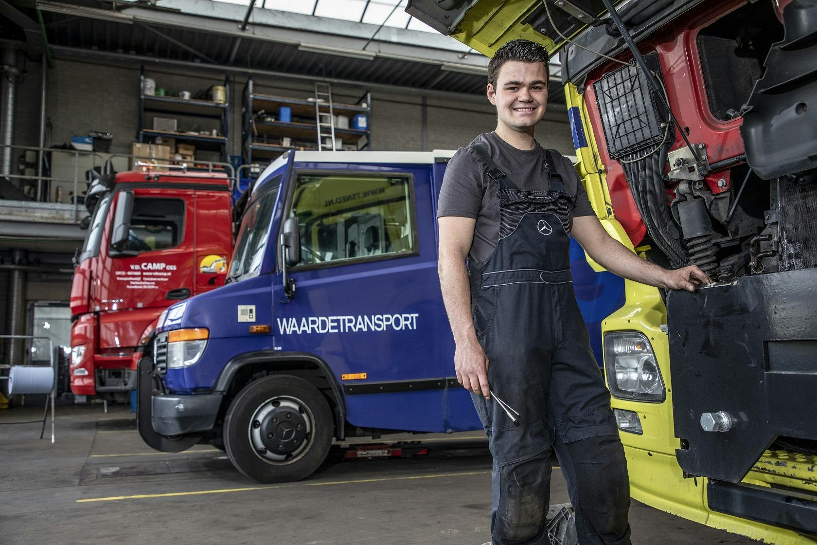 Ik begonnen als 2e monteur. Na dat diploma heb ik mijn papieren voor 1e monteur gehaald. Ik zit nu in het laatste jaar van de opleiding tot technisch specialist. Ook heb ik mijn APK- en Tachograafpapieren. Via het werk word ik voortdurend opgeleid binnen Mercedes-Benz en heb ik diverse cursussen gevolgd bij Innovam.