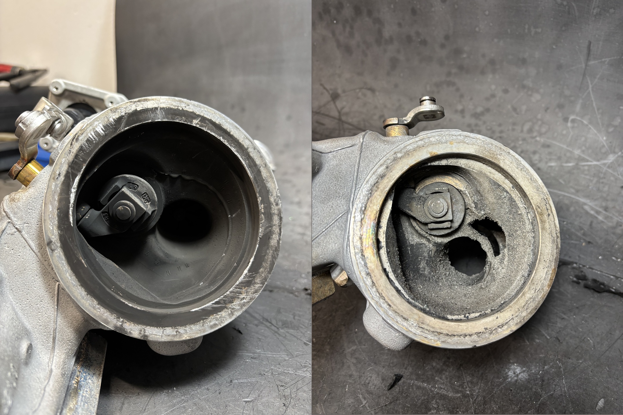 Als hij ons belt voor advies, kloppen we het kenteken in de computer om te zien om welke turbo het gaat en aha… het is een turbo met een recirculatieklep, ofwel bypass valve, dump valve of blow-off. Dat doet direct een belletje rinkelen, want een defecte recirculatieklep staat bekend om het produceren van veel lawaai. We checken het nog even in onze kennisbank en ons vermoeden wordt bevestigd.