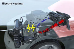 Temperatuur is ook een hot issue in elektrisch aangedreven auto's. De reden is duidelijk. Een verbrandingsmotor zet meer chemische energie om in warmte dan in beweging. Na een korte opwarmtijd is al die warmte prima in staat om zelfs op winterse dagen het interieur behaaglijk te houden. In een elektrisch aangedreven auto is veel minder afvalwarmte beschikbaar. Die is immers al grotendeels vrijgekomen in de elektriciteitscentrale. Een alternatief is de warmtepomp. Die fungeert als een omgekeerde airco. "Bij 0 °C geeft een warmtepomp een elektrische auto daarom zomaar 26 % meer actieradius", zegt BMW.