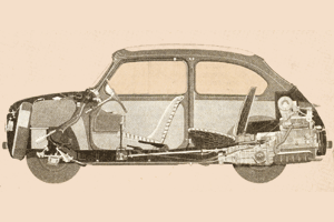 Fiat komt met de 600. Dit wondertje van compacte automobielbouw biedt ruimte aan vier volwassenen en een redelijke hoeveelheid bagage. En dat bij een ...
