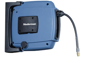Werkplaatsinrichter Lebon & Gimbrair introduceert een nieuw programma slang- en kabelhaspels van Nederman. De slang of kabel rolt zichzelf op in een compacte, gesloten muurcassette en slingert dus niet over de grond. Voor bijna elke toepassing is een passende haspel verkrijgbaar.
