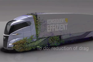 Een truck, dat is een grote rechthoekige doos. In de milieuvriendelijke truck van de toekomst moet die doos een stuk lichter door de lucht te duwen zijn. MAN toont de mogelijkheden.