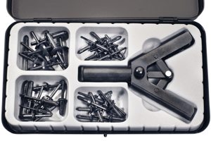 Kunststof popnagels worden onder andere gebruikt bij het vastzetten van wielkuipen, paravans en accessoires. De kwetsbare plastic nagels/clips breken gemakkelijk af bij demontage. Met de kunststof popnagelset van Müller-Werkzeug monteert u nieuwe kunststof nagels in een handomdraai.